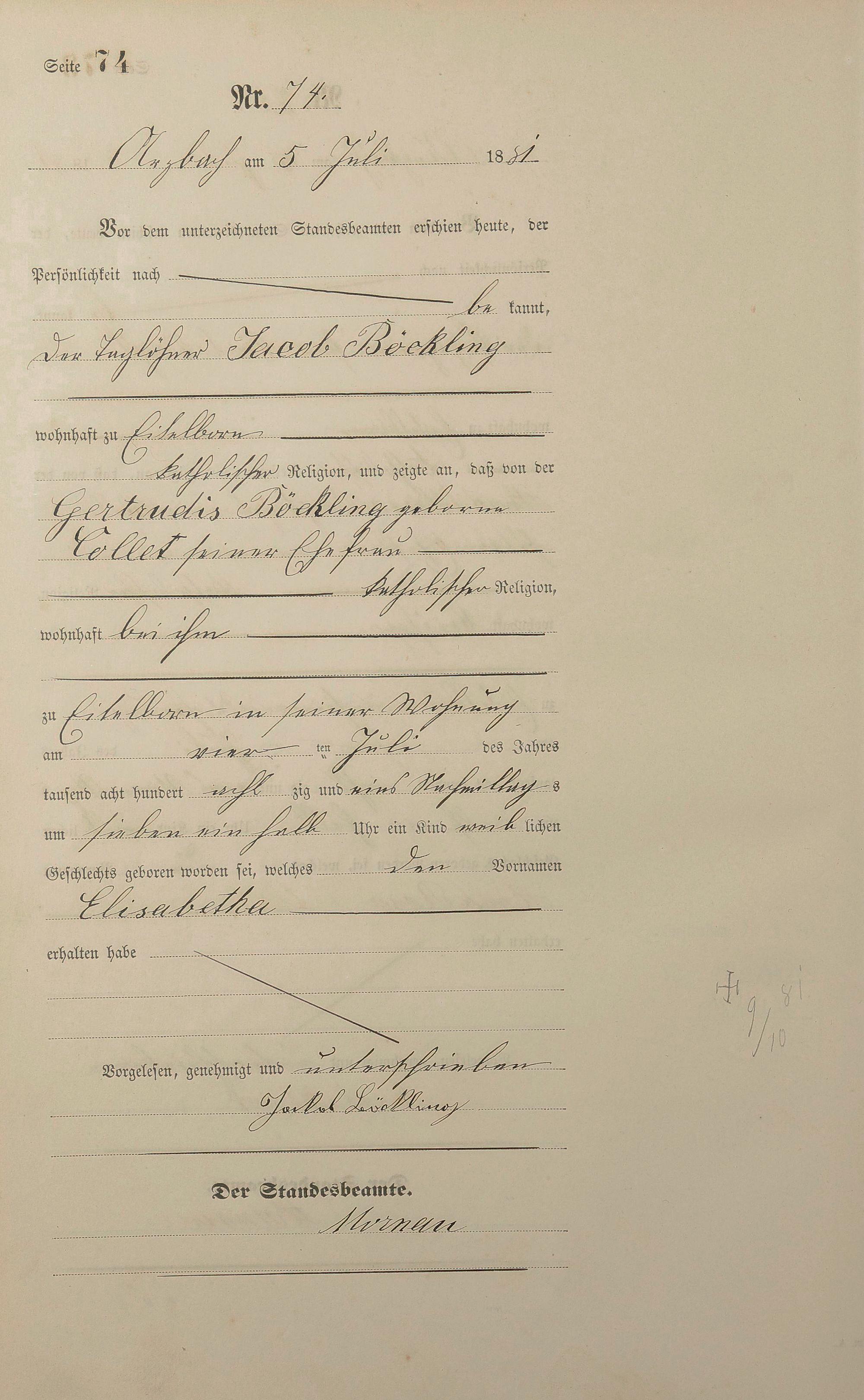 Geburtsregister 1881