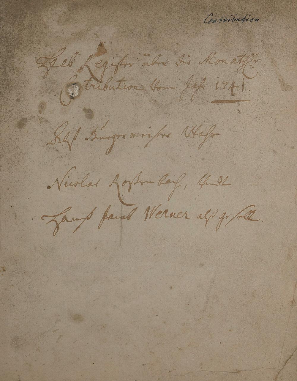 Kontributionsregister angefertigt von Bürgermeister Nicolaus Rosenbach und Geselle Hans Jacob Werner