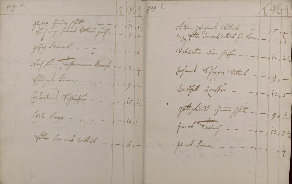 Kontributionsregister angefertigt von Bürgermeister Nicolaus Rosenbach und Geselle Hans Jacob Werner