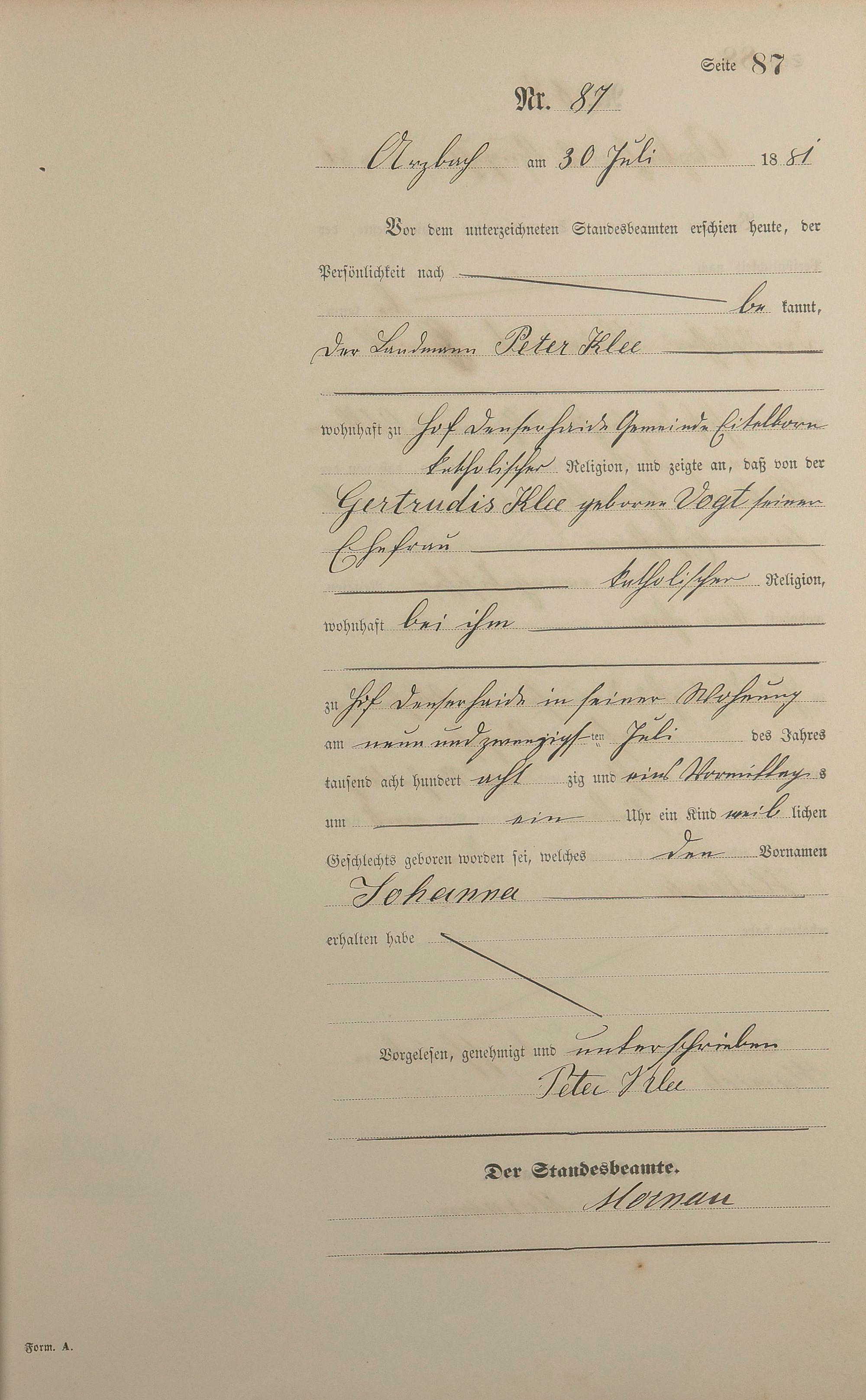 Geburtsregister 1881