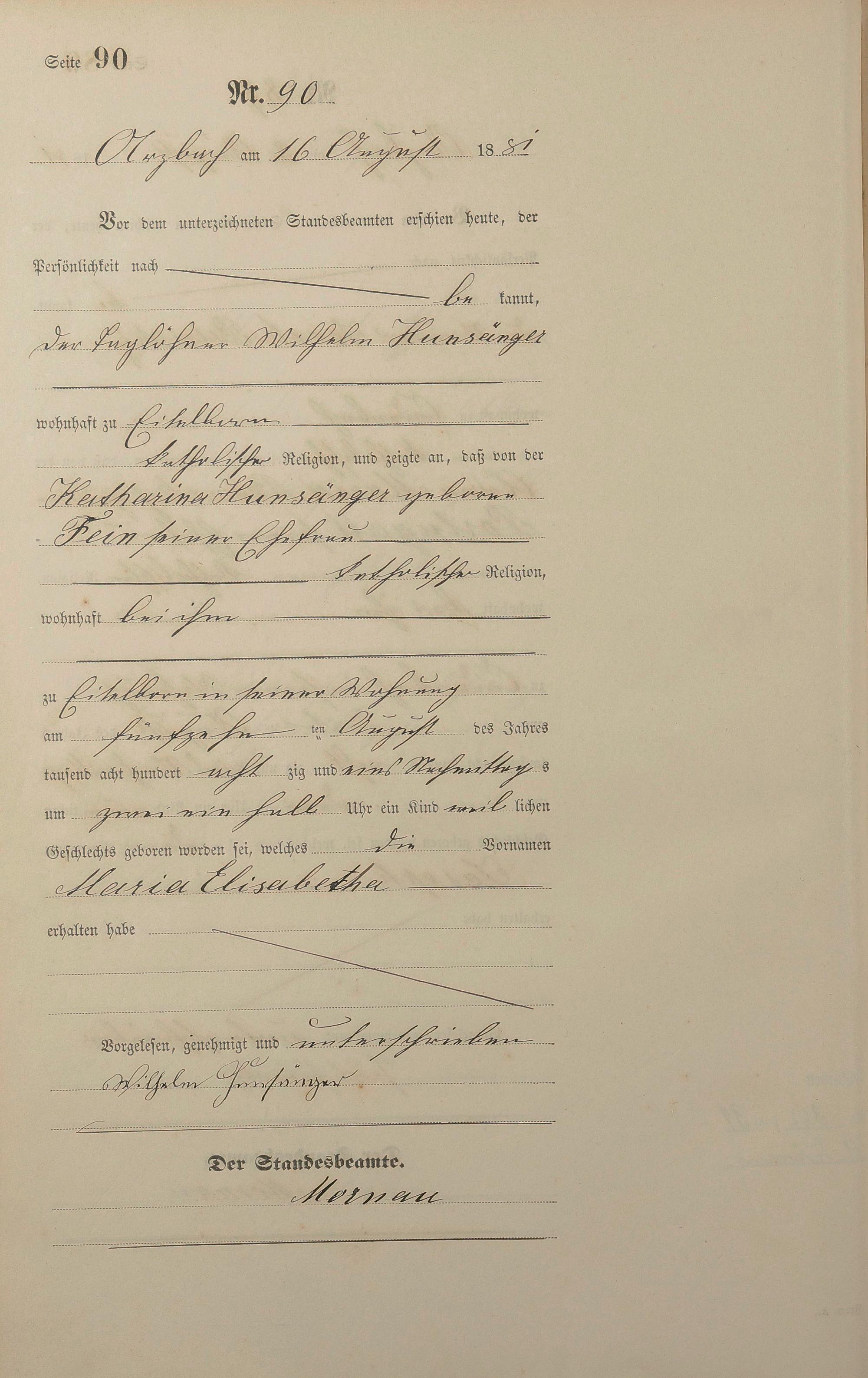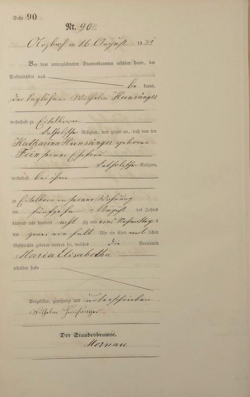 Geburtsregister 1881