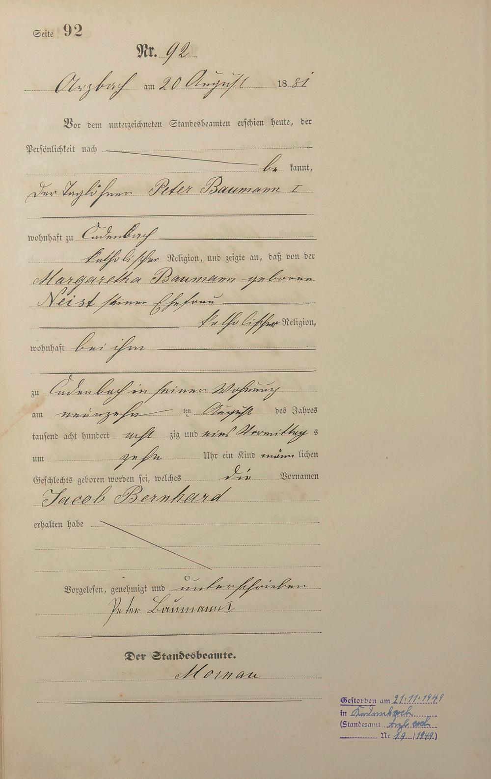 Geburtsregister 1881