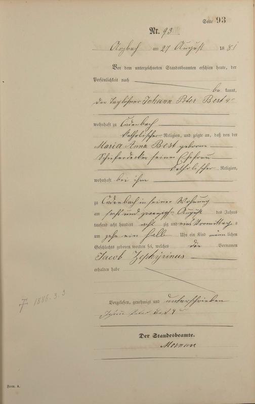 Geburtsregister 1881