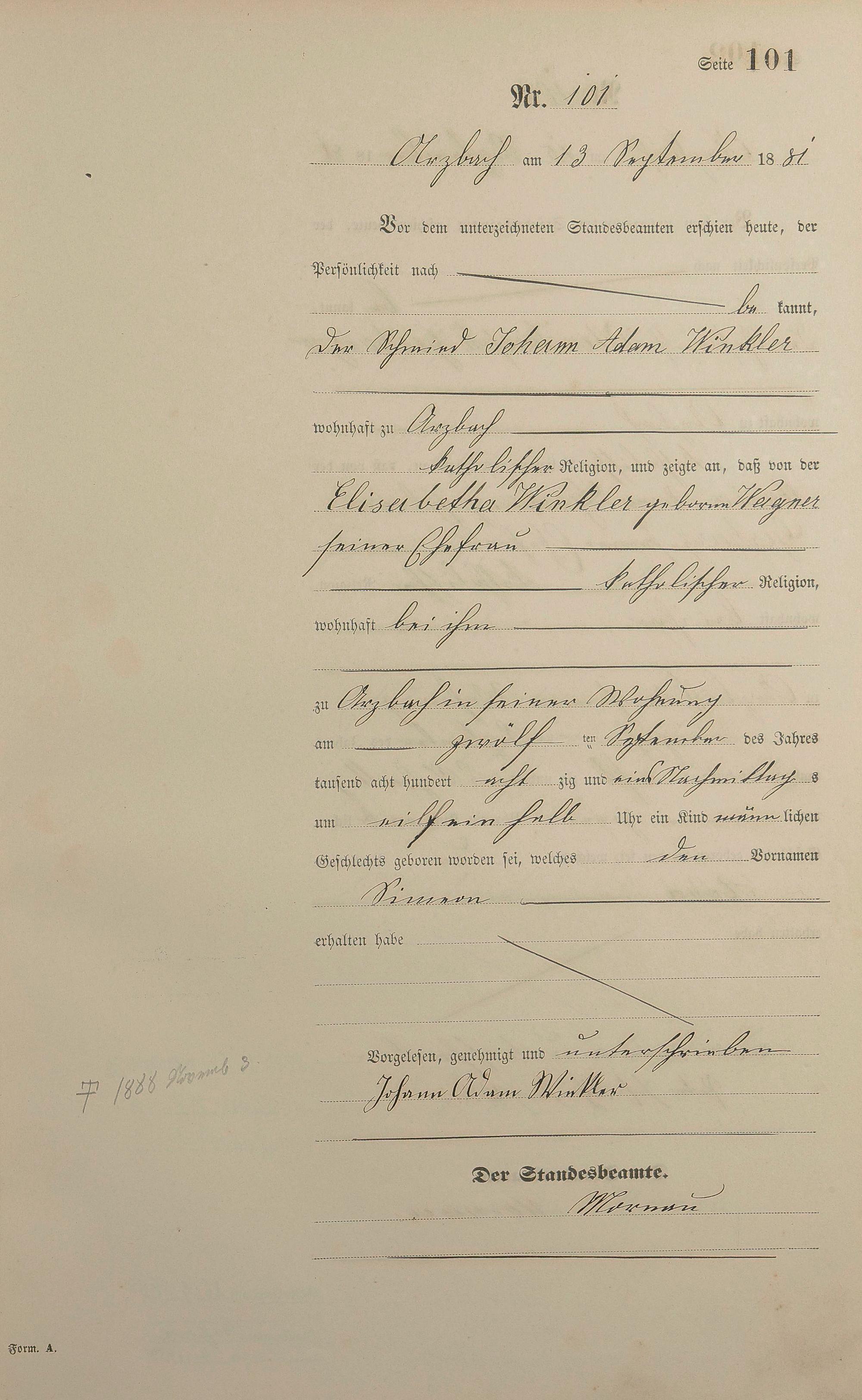 Geburtsregister 1881