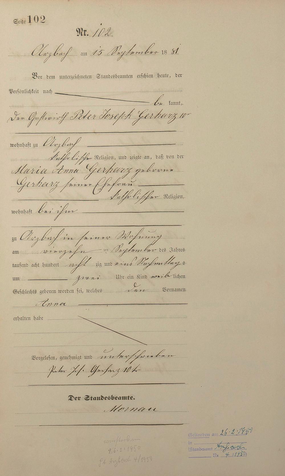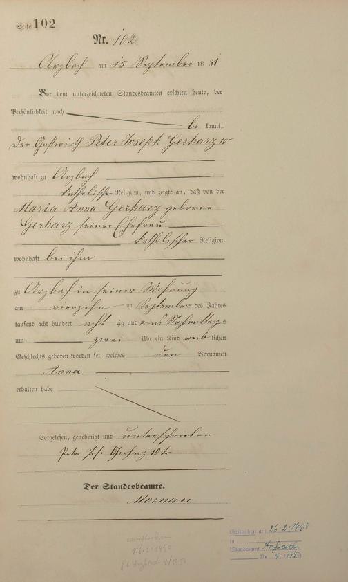 Geburtsregister 1881