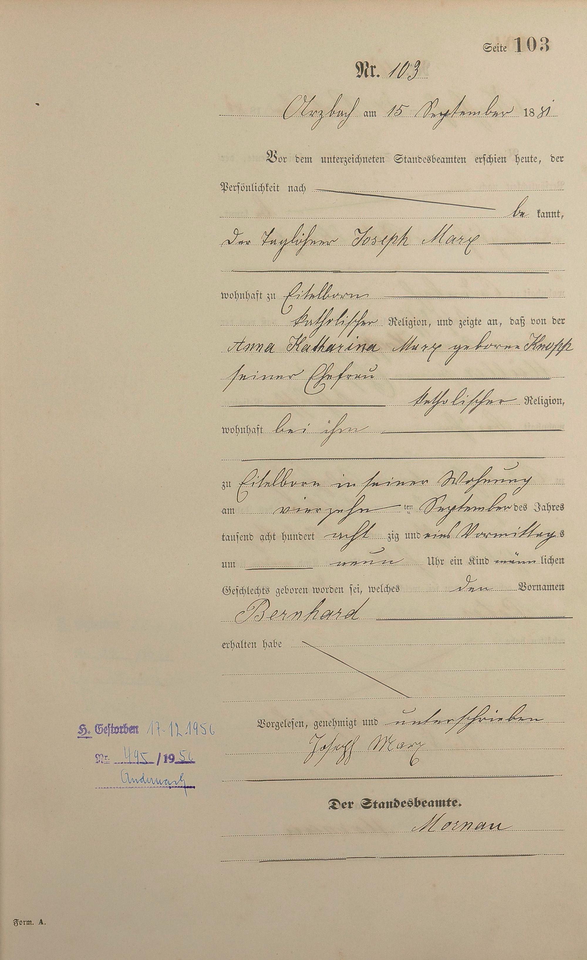 Geburtsregister 1881