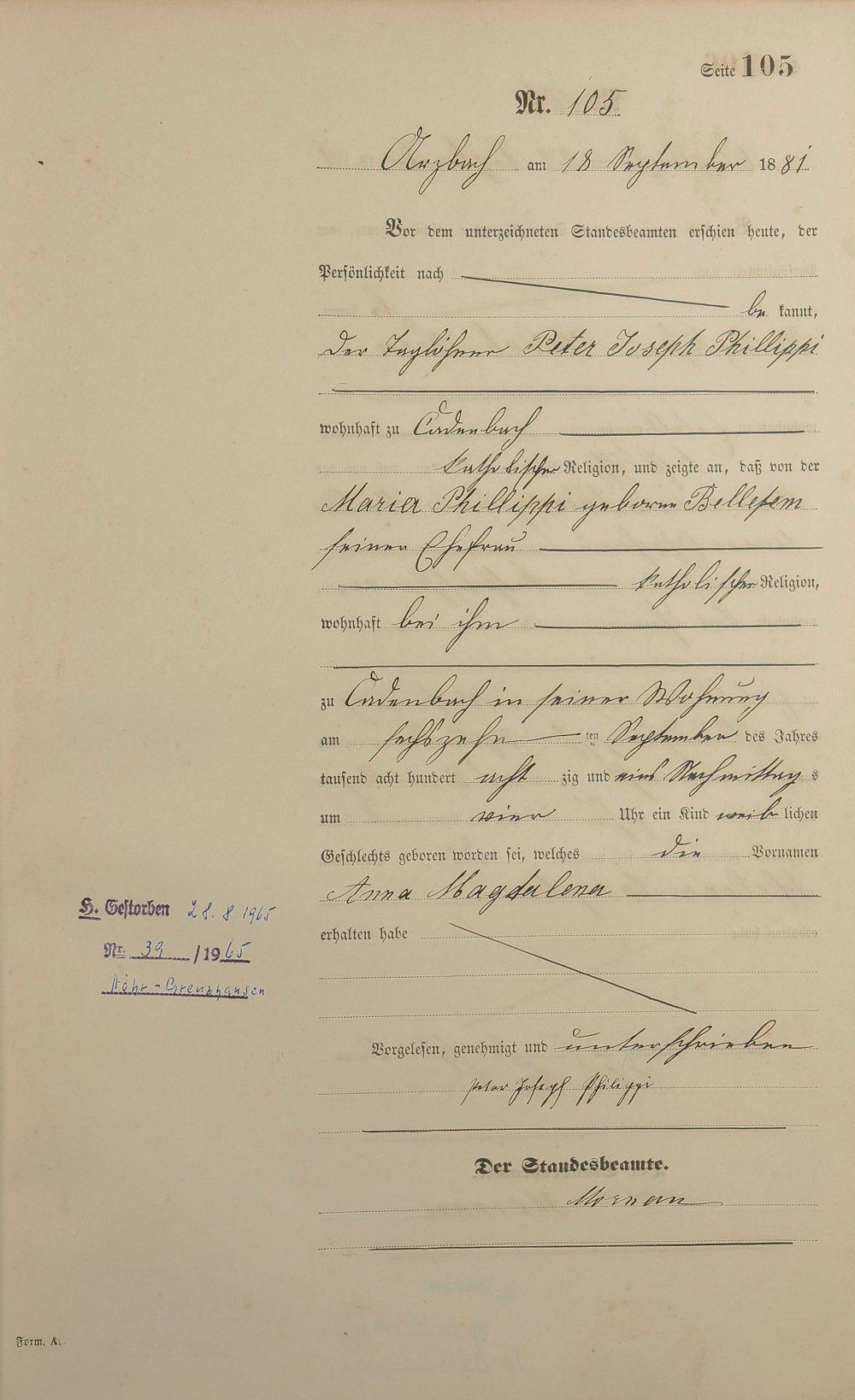 Geburtsregister 1881