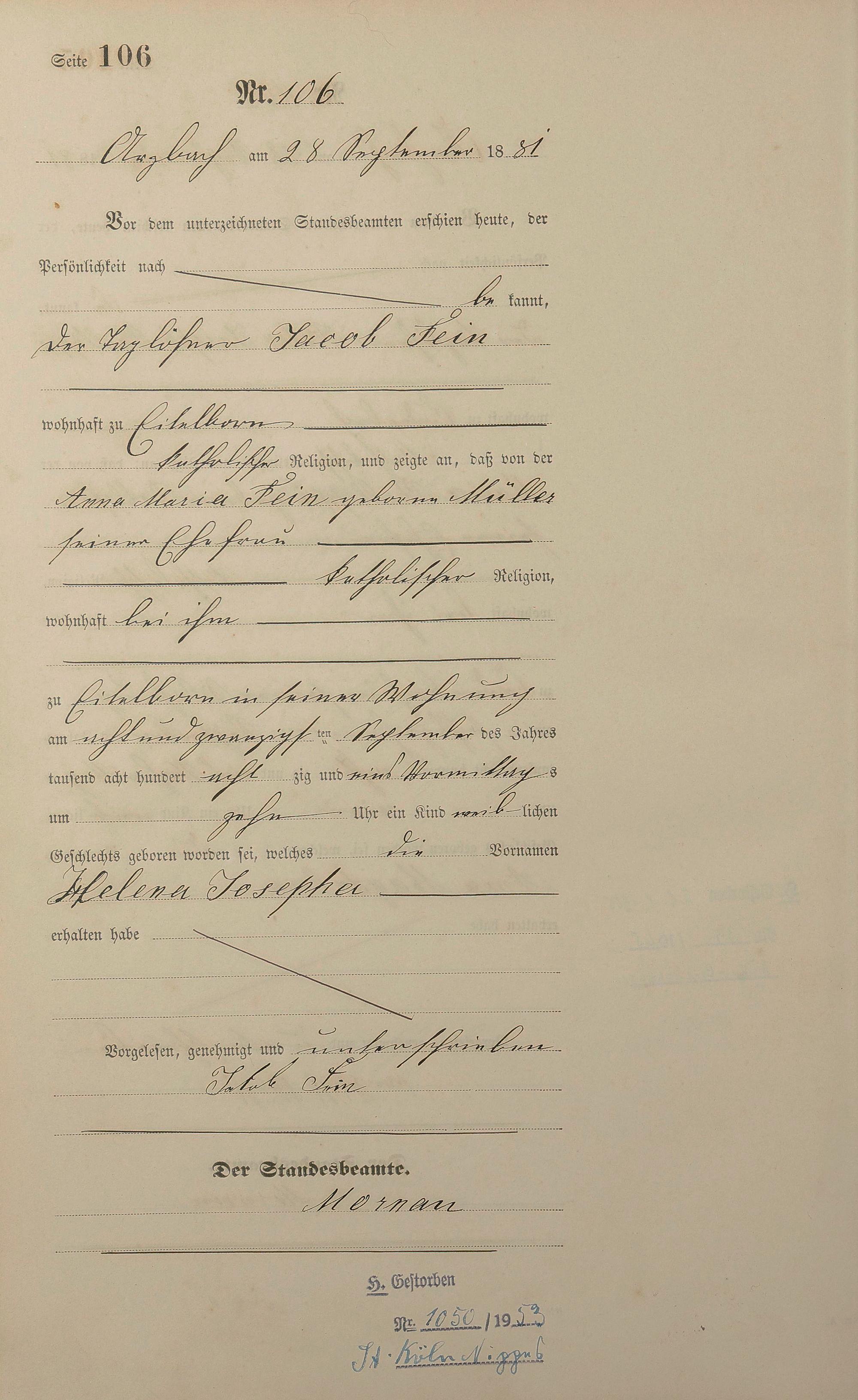 Geburtsregister 1881