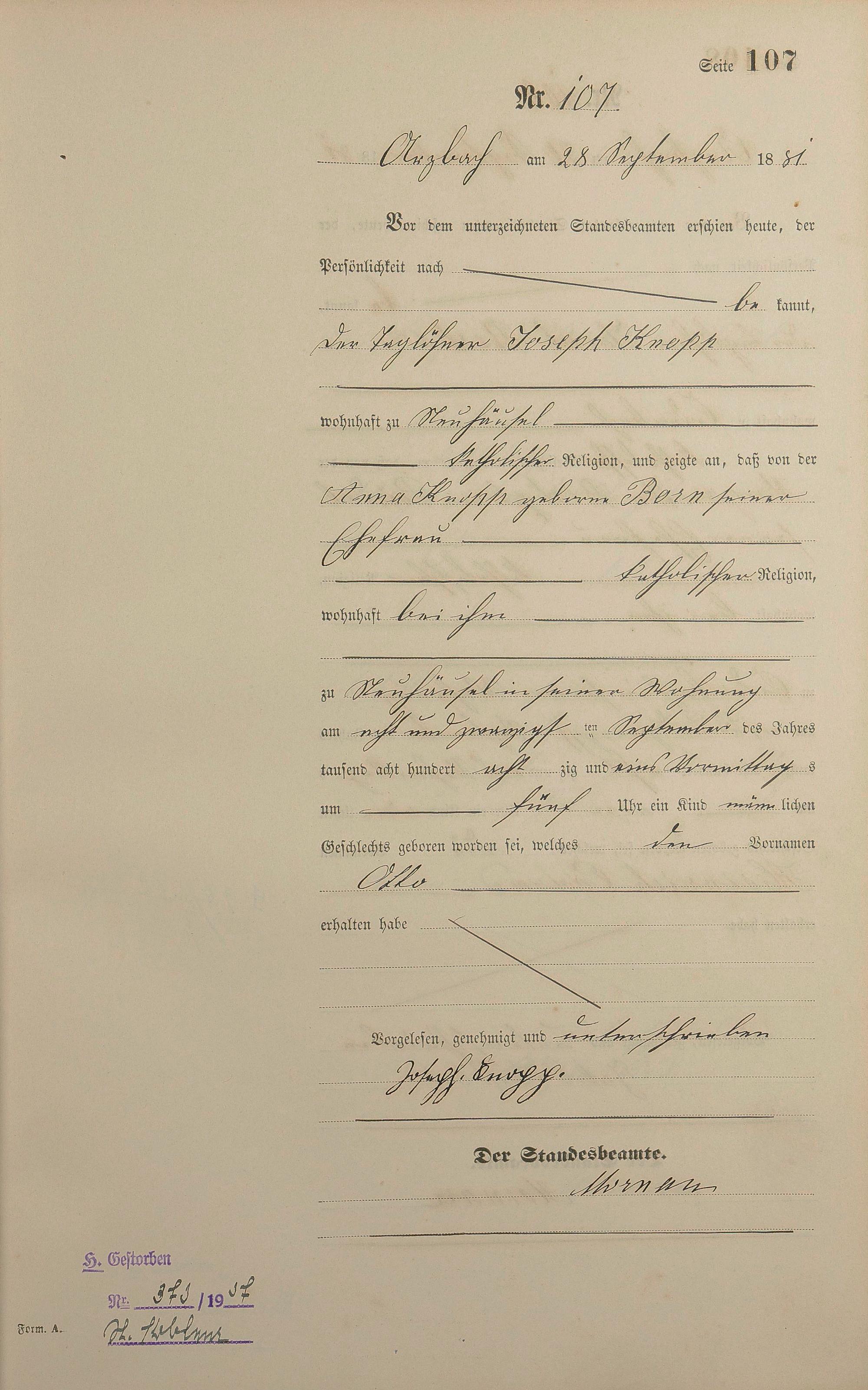 Geburtsregister 1881