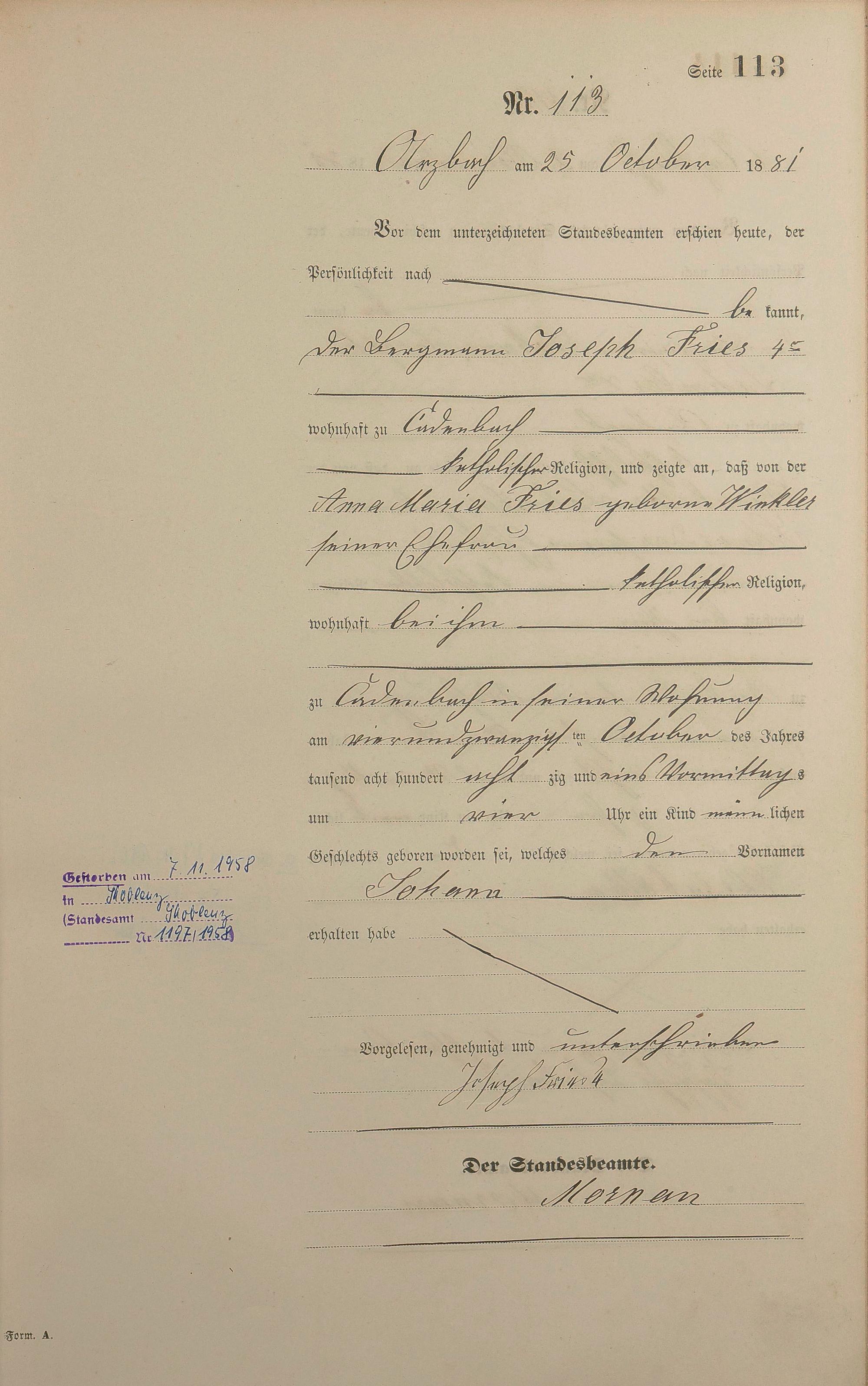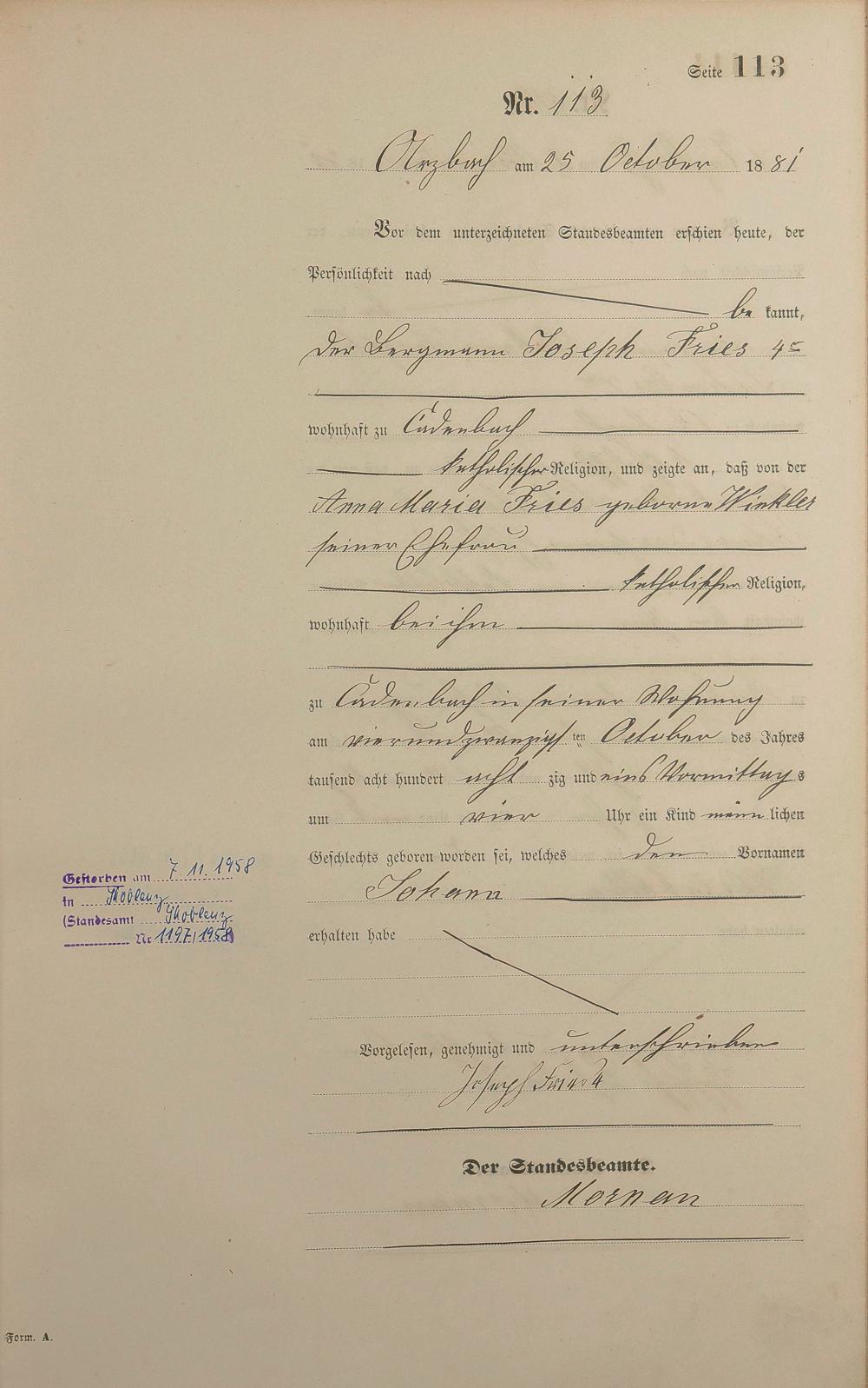 Geburtsregister 1881