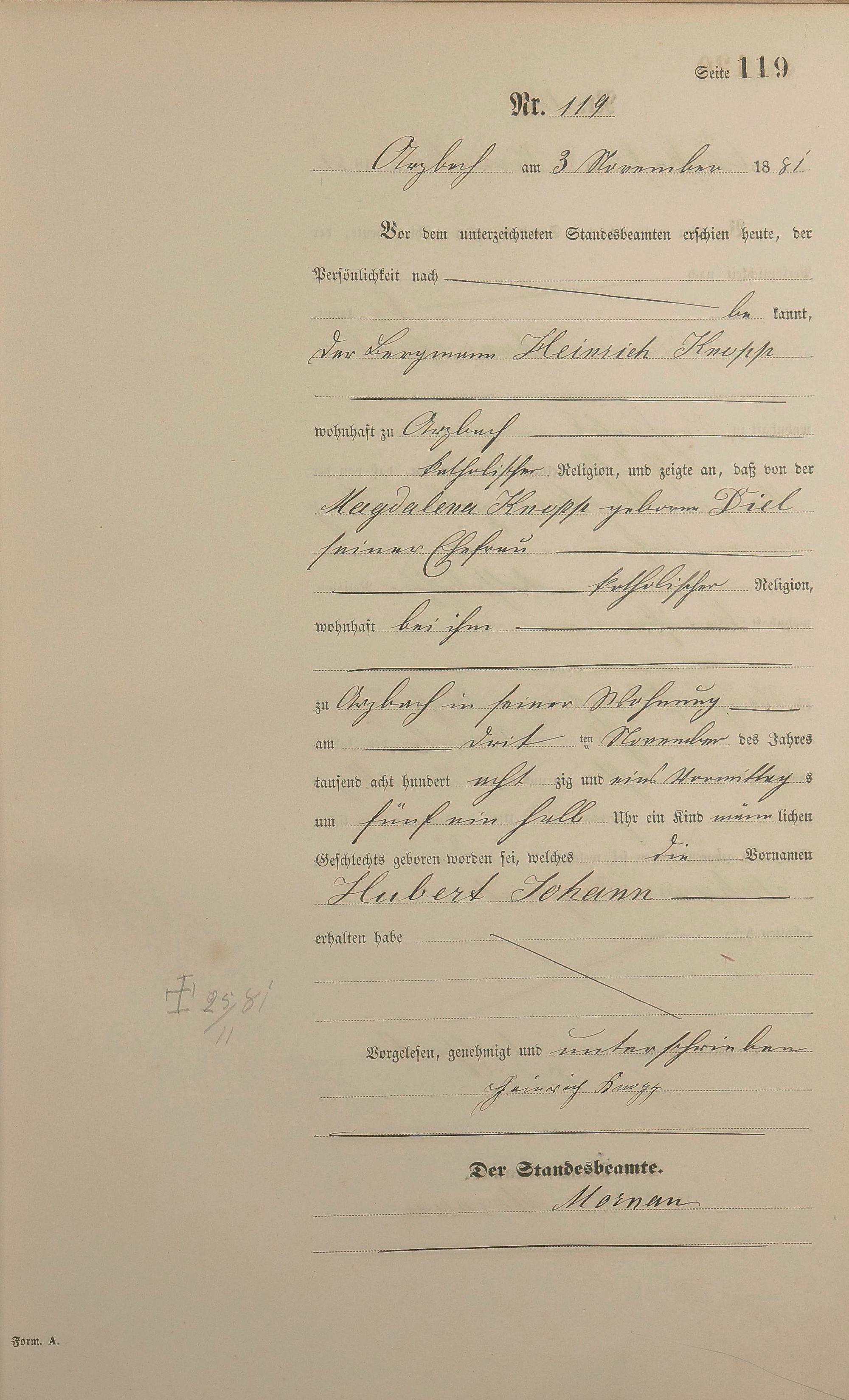 Geburtsregister 1881