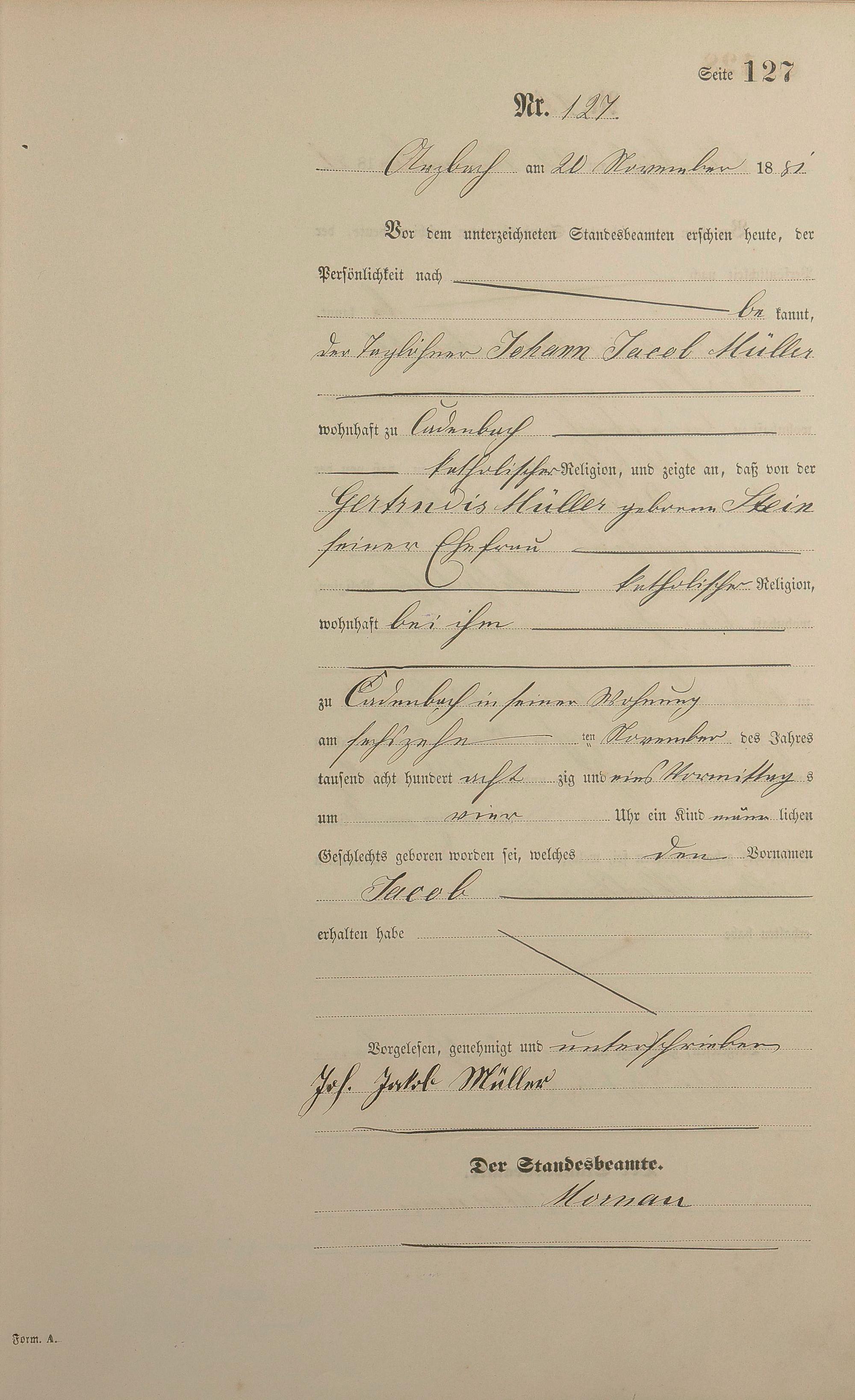 Geburtsregister 1881