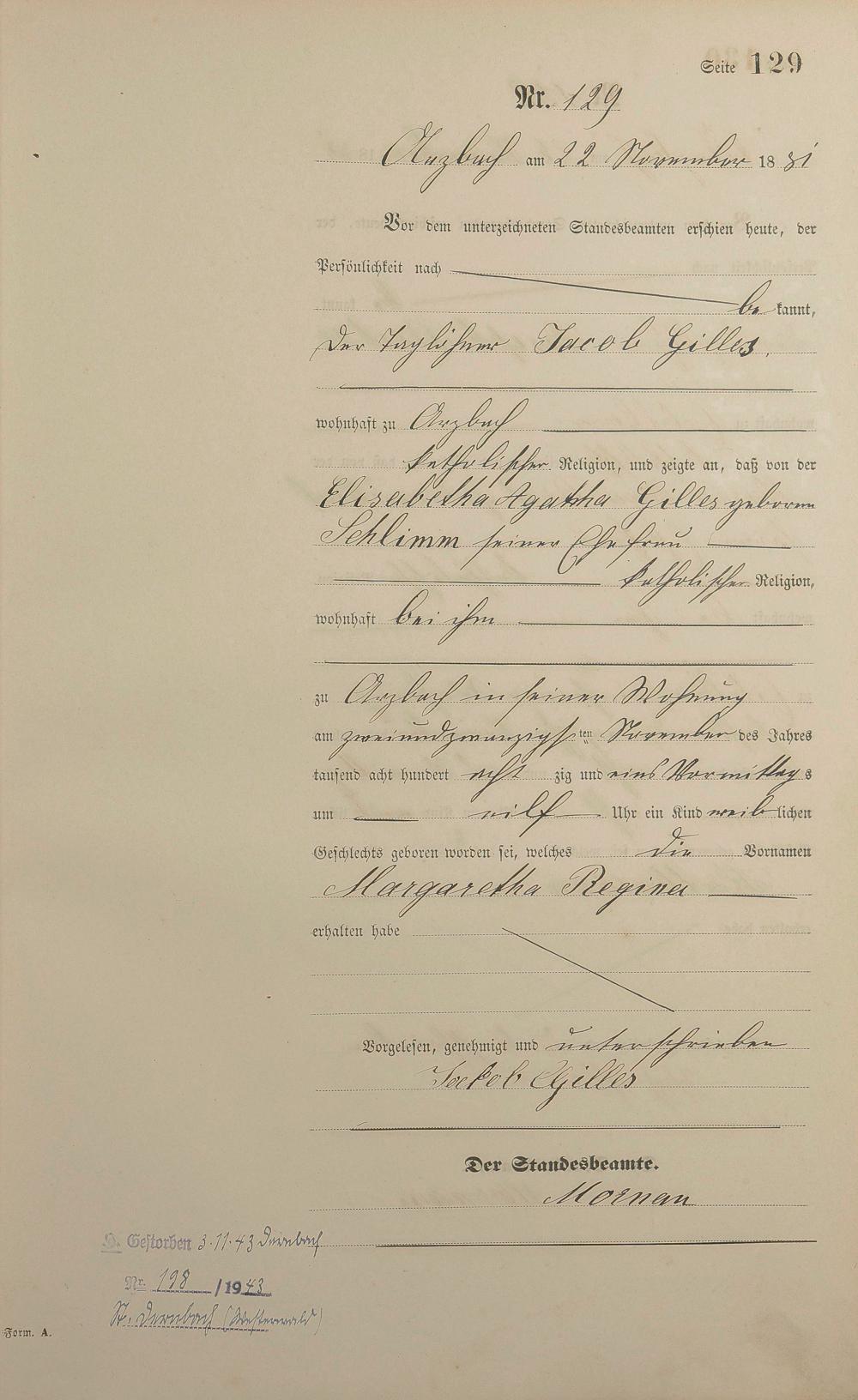 Geburtsregister 1881