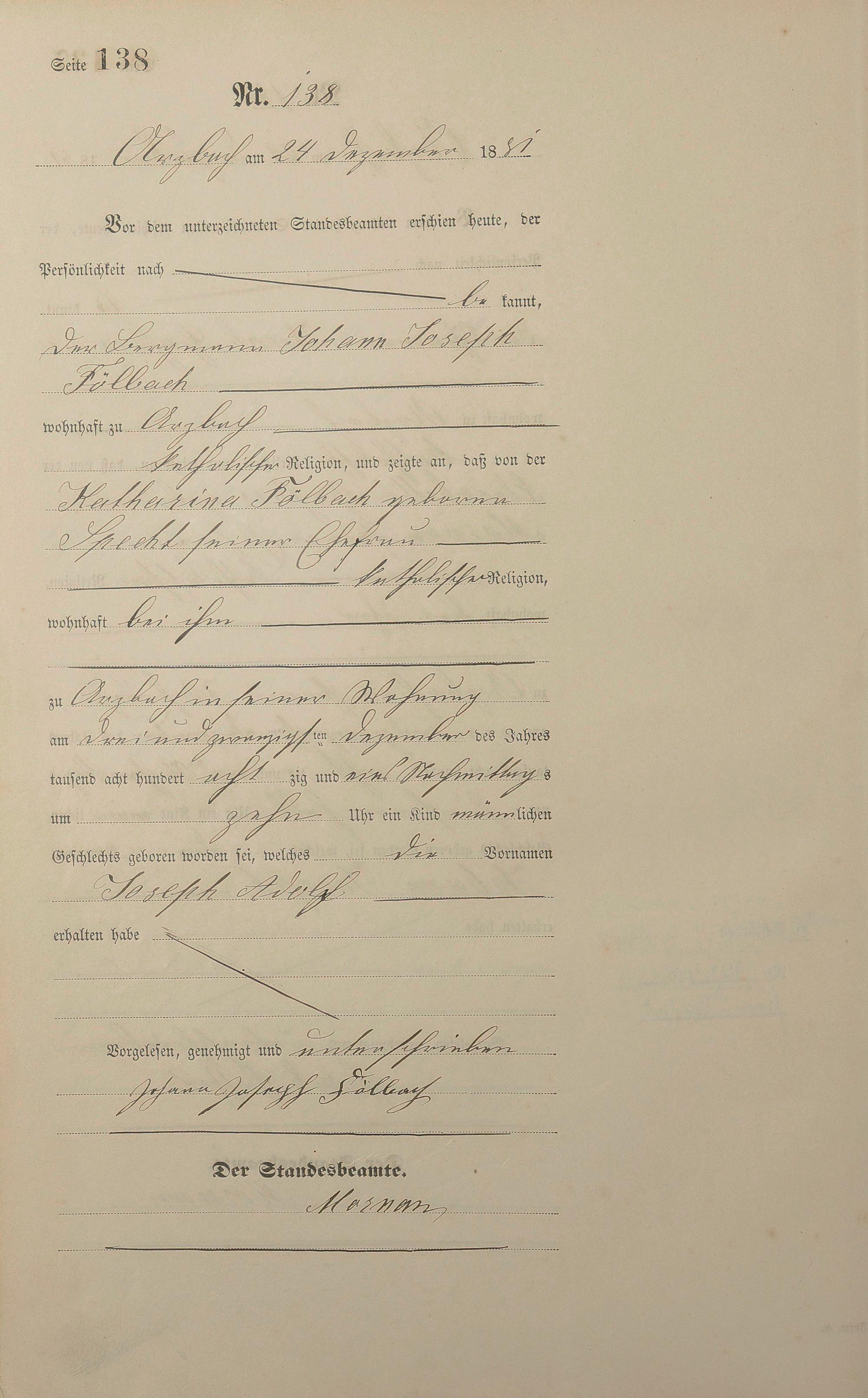 Geburtsregister 1881