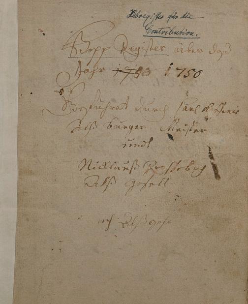 Kontributionsregister angefertigt von Bürgermeister Carl Kaffine und Geselle Nicolaus Rosenbach