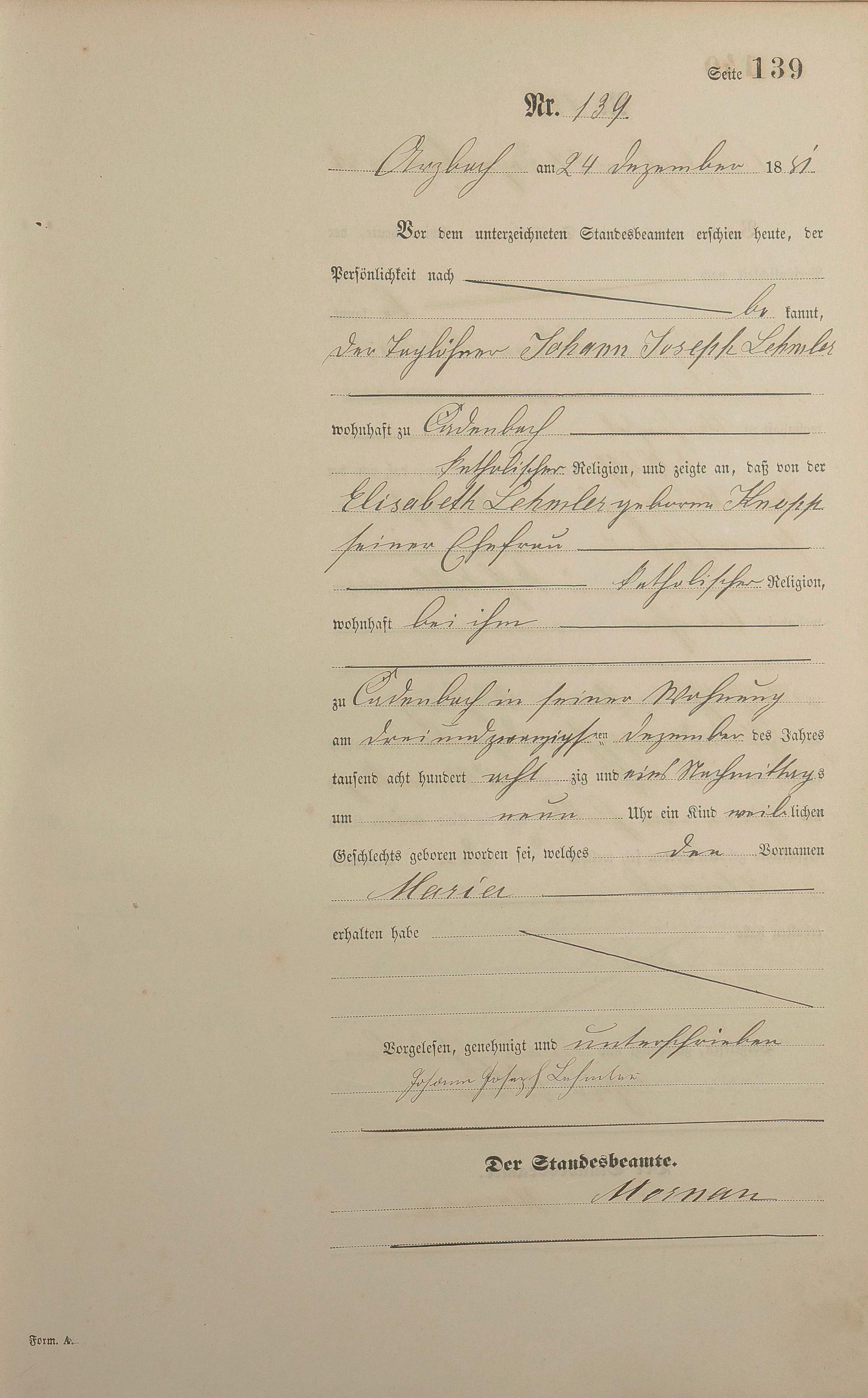 Geburtsregister 1881