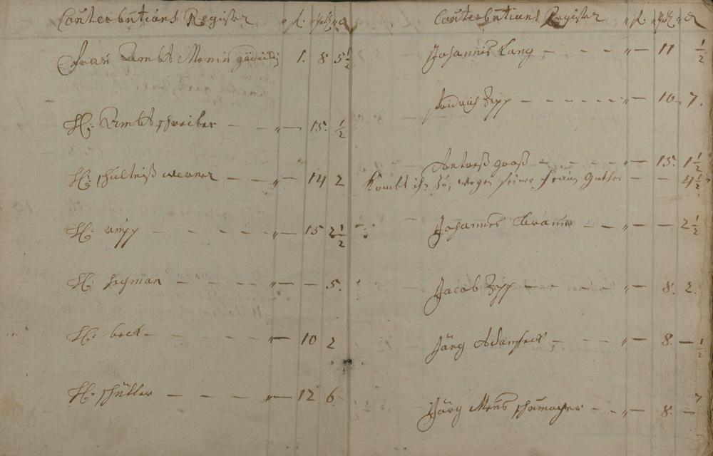 Kontributionsregister angefertigt von Bürgermeister Carl Kaffine und Geselle Nicolaus Rosenbach