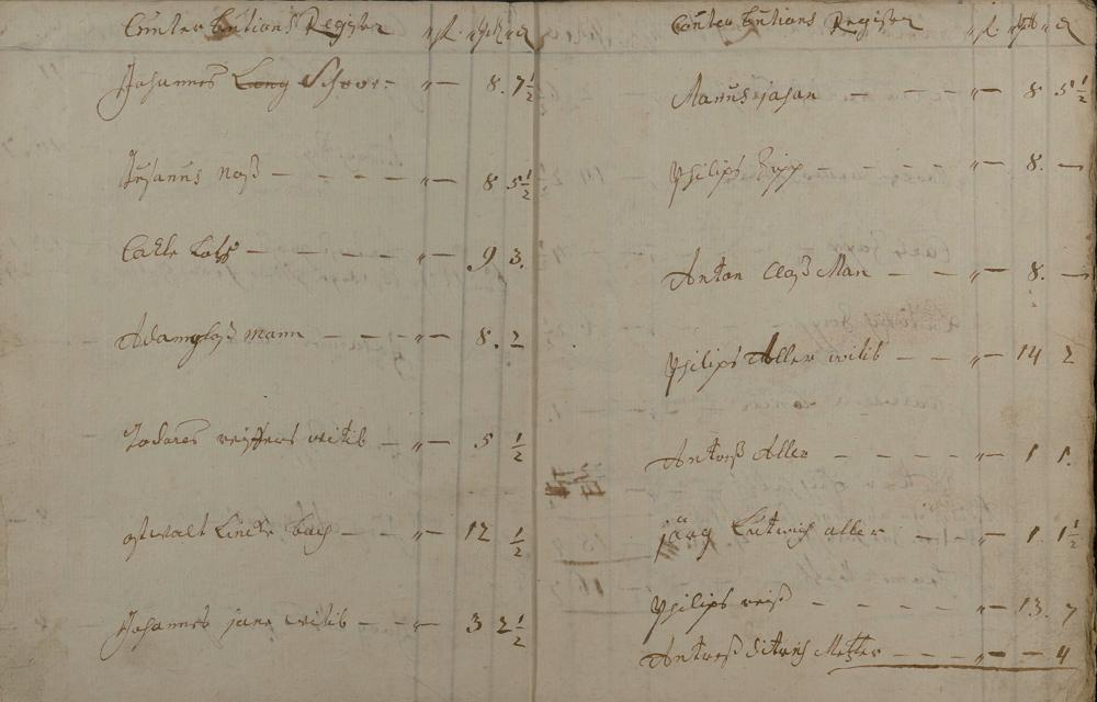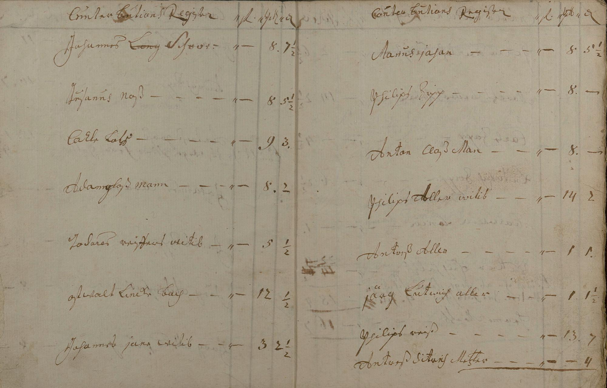 Kontributionsregister angefertigt von Bürgermeister Carl Kaffine und Geselle Nicolaus Rosenbach