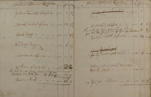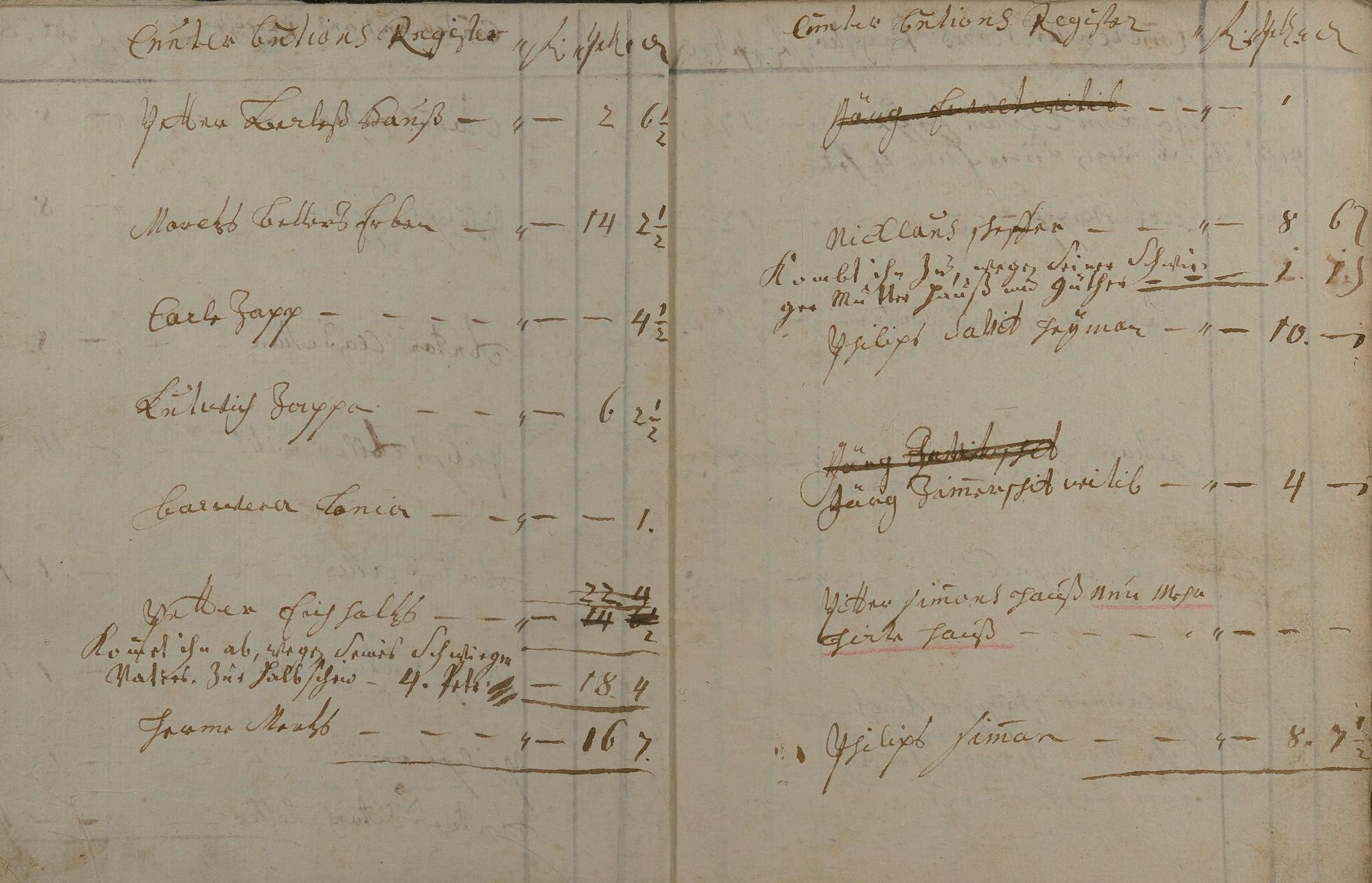 Kontributionsregister angefertigt von Bürgermeister Carl Kaffine und Geselle Nicolaus Rosenbach