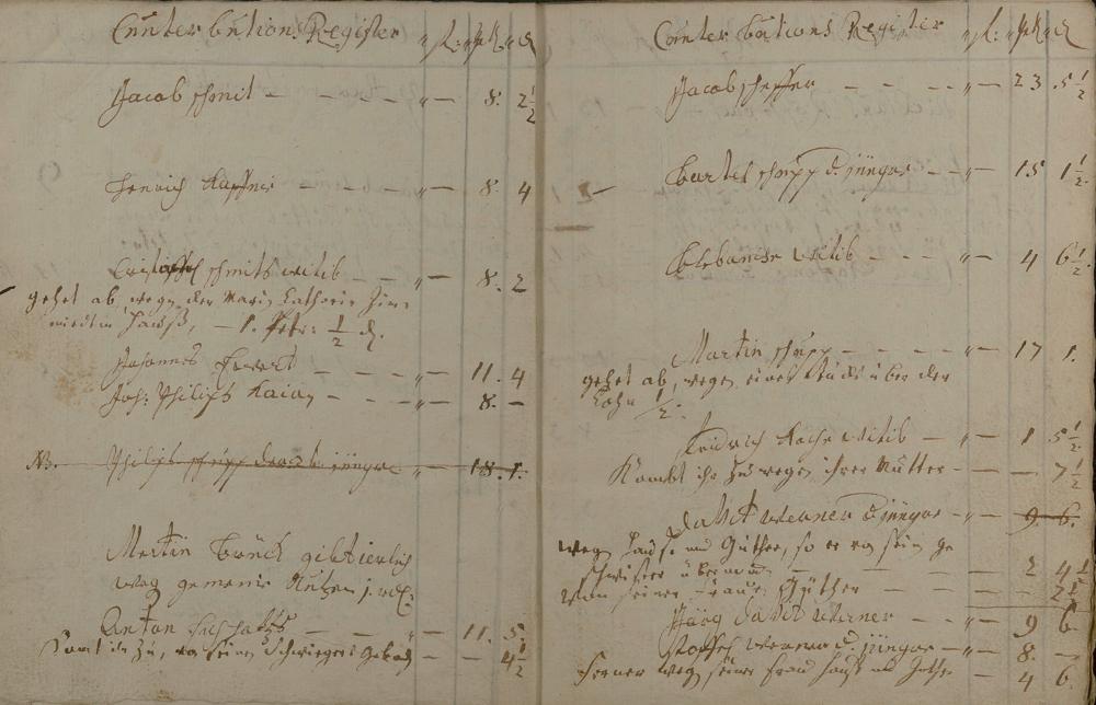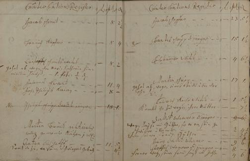 Kontributionsregister angefertigt von Bürgermeister Carl Kaffine und Geselle Nicolaus Rosenbach