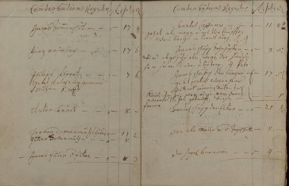 Kontributionsregister angefertigt von Bürgermeister Carl Kaffine und Geselle Nicolaus Rosenbach