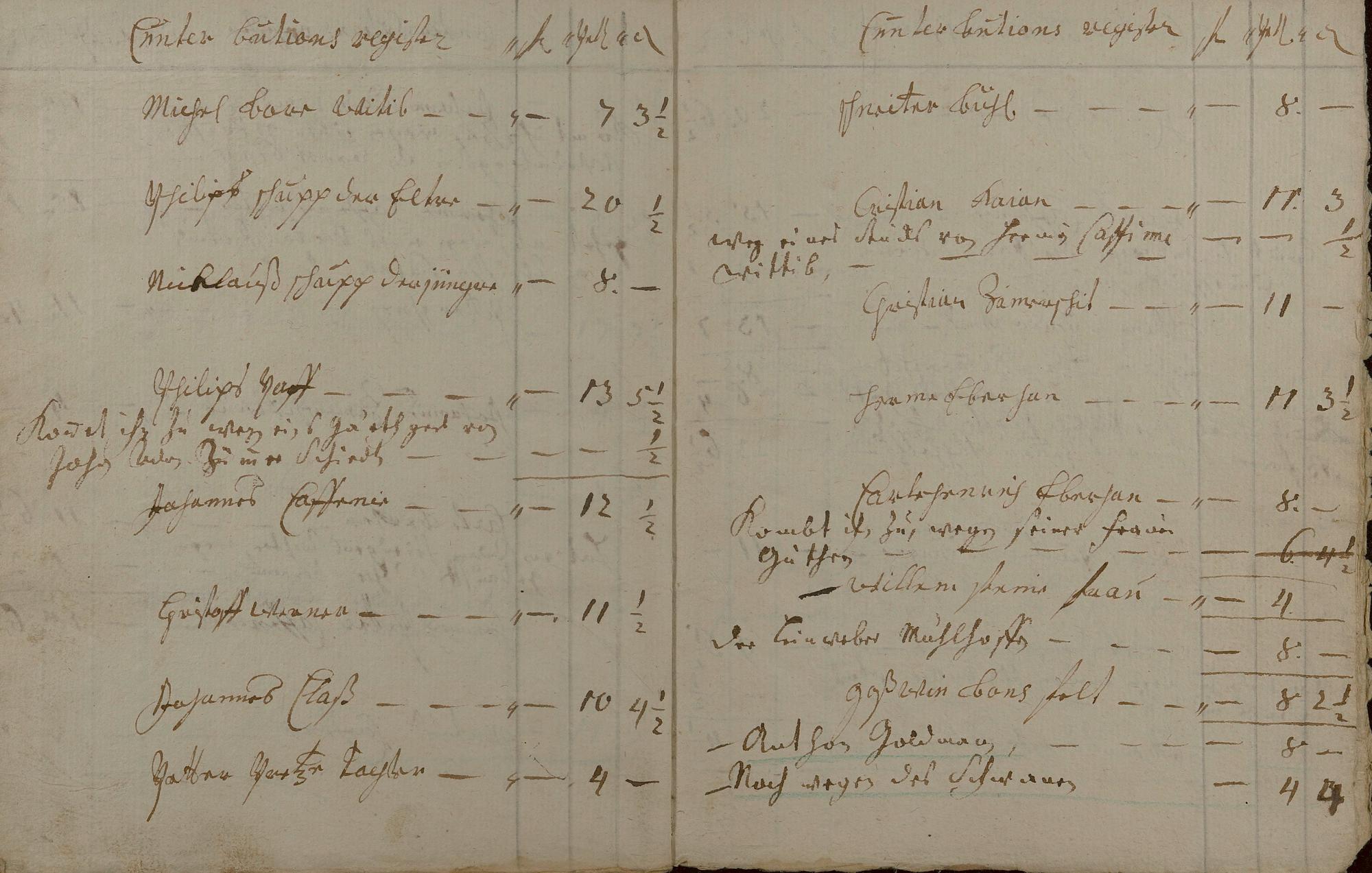Kontributionsregister angefertigt von Bürgermeister Carl Kaffine und Geselle Nicolaus Rosenbach