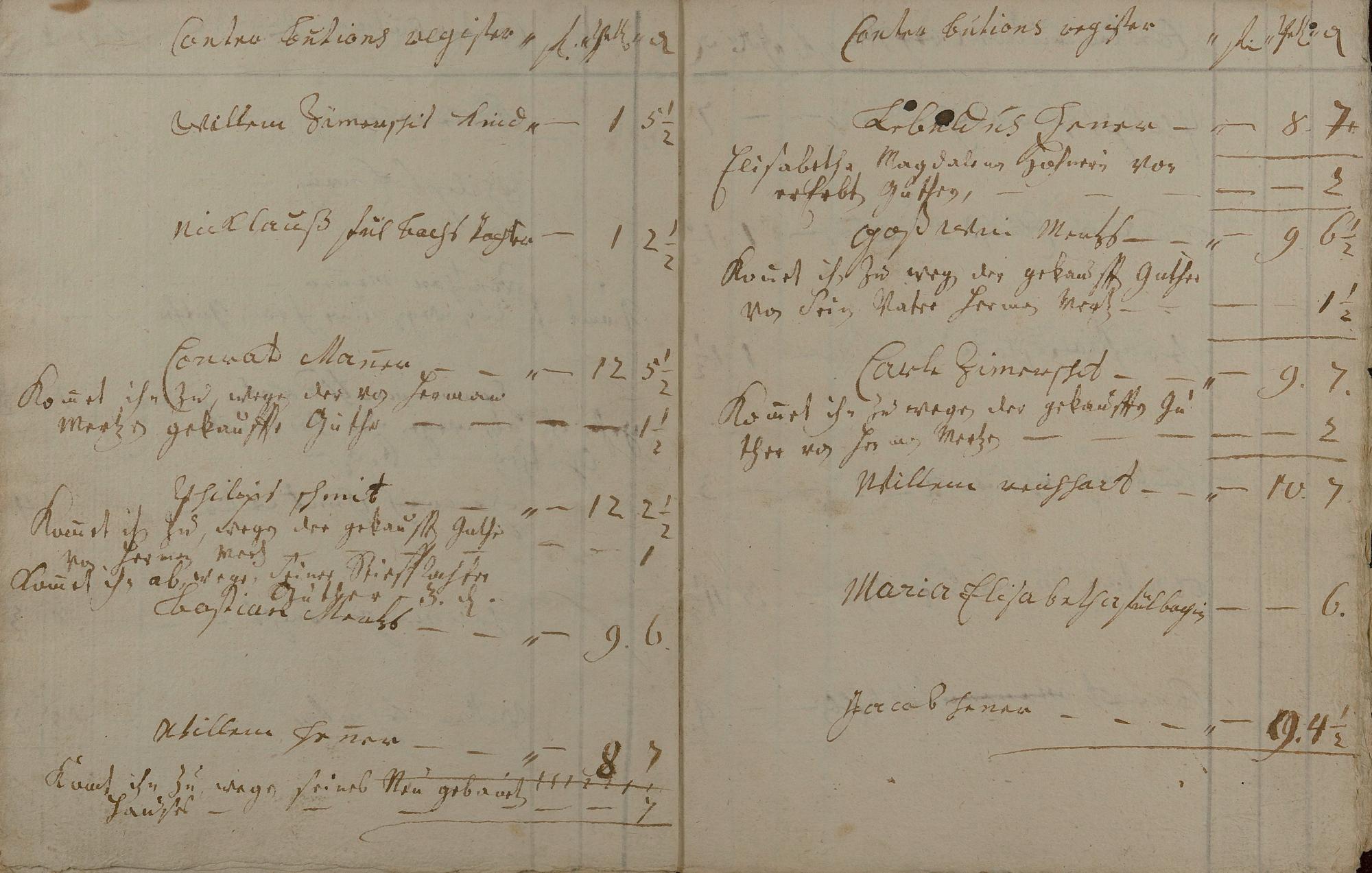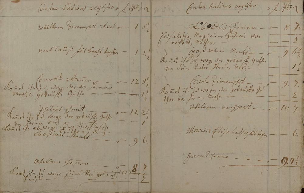 Kontributionsregister angefertigt von Bürgermeister Carl Kaffine und Geselle Nicolaus Rosenbach