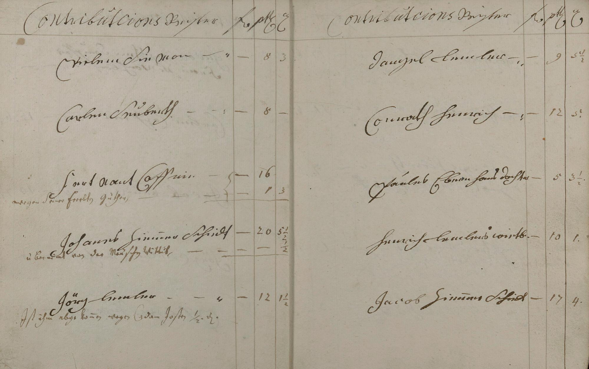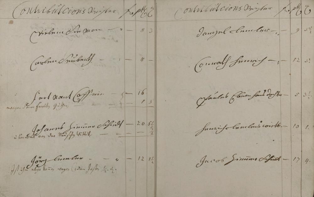 Kontributionsregister angefertigt von Bürgermeister Valentin Kehr und Geselle Johann Conrad Heinrich