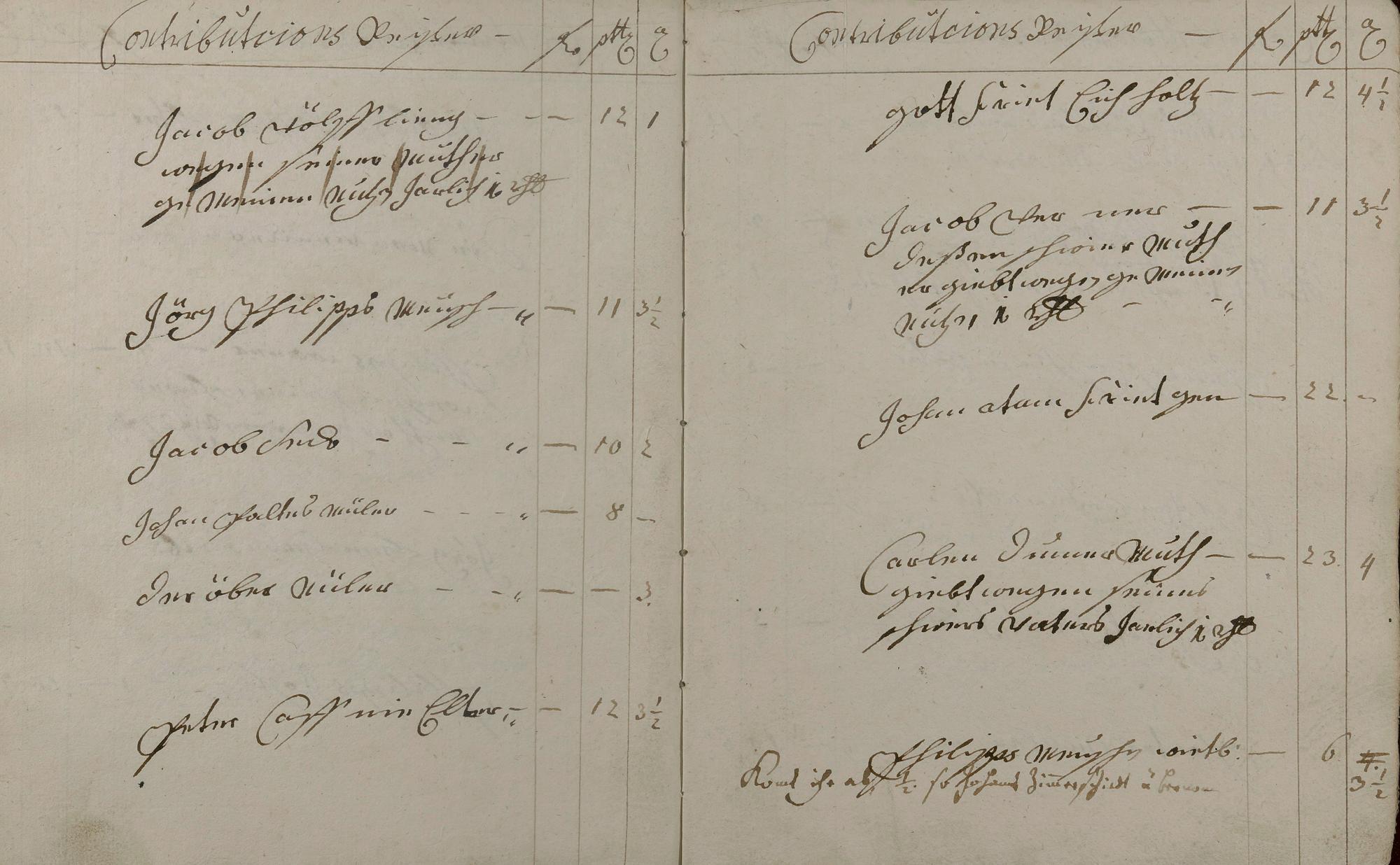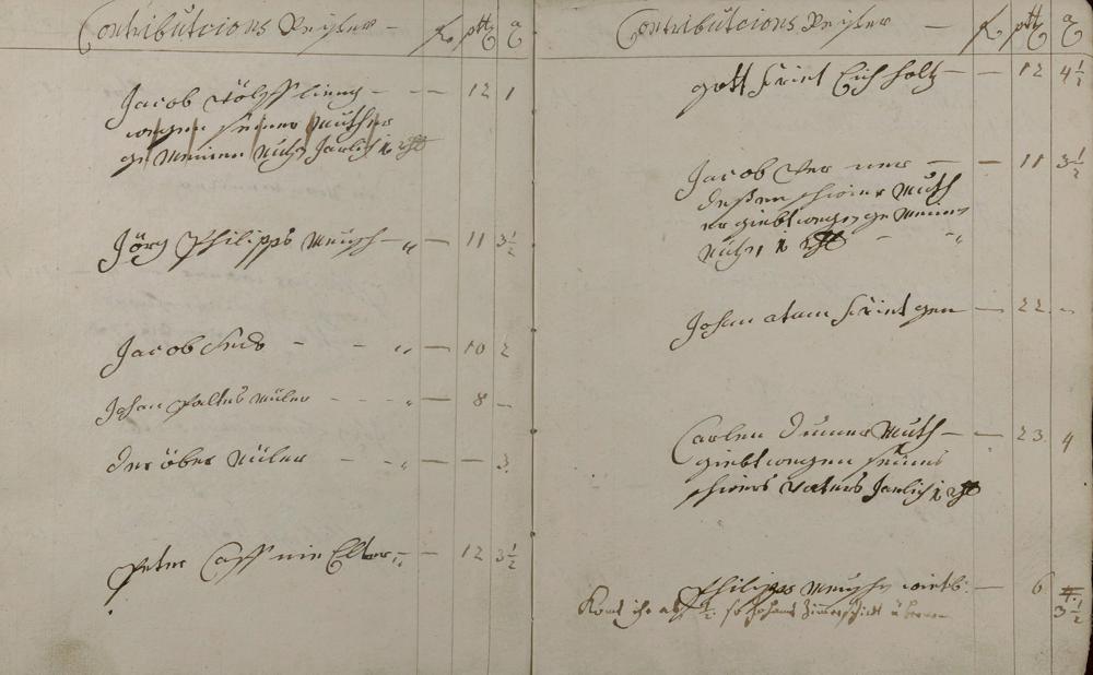 Kontributionsregister angefertigt von Bürgermeister Valentin Kehr und Geselle Johann Conrad Heinrich