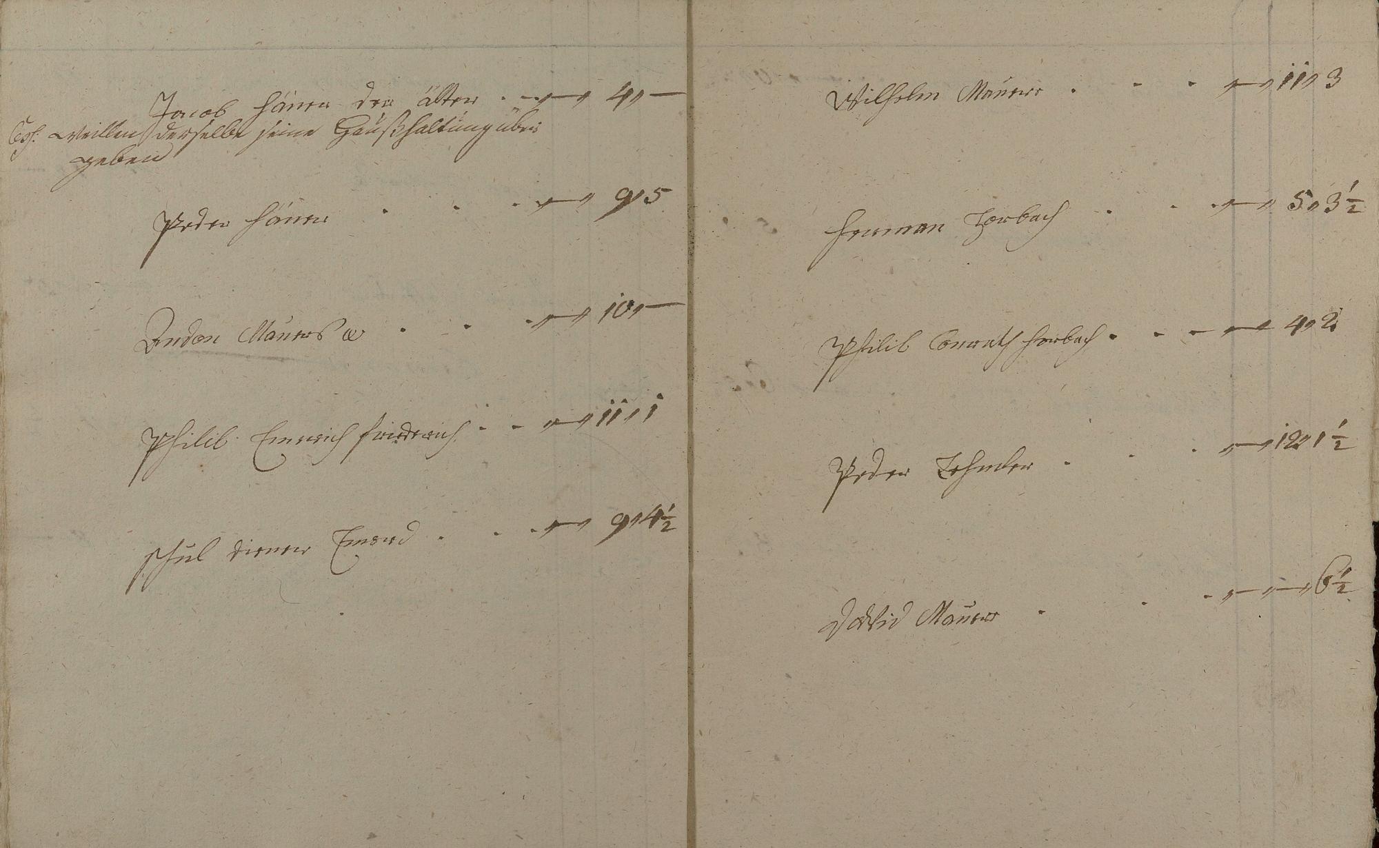 Kontributionsregister angefertigt von Bürgermeister Johann Jacob Fuchs und Geselle Adam Jost