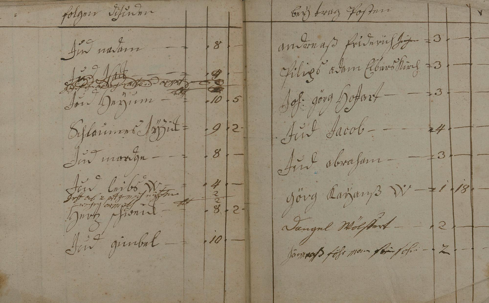 Kontributionsregister angefertigt von Bürgermeister Johann Philipp Schupp jun. und Geselle Anton Werner und Erbengesell Johann Werner Führer