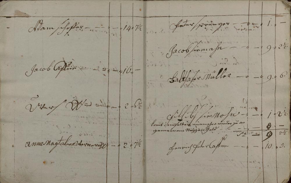 Kontributionsregister angefertigt von Bürgermeister Ferdinand Kaffine und Geselle Heinrich Peter Seck