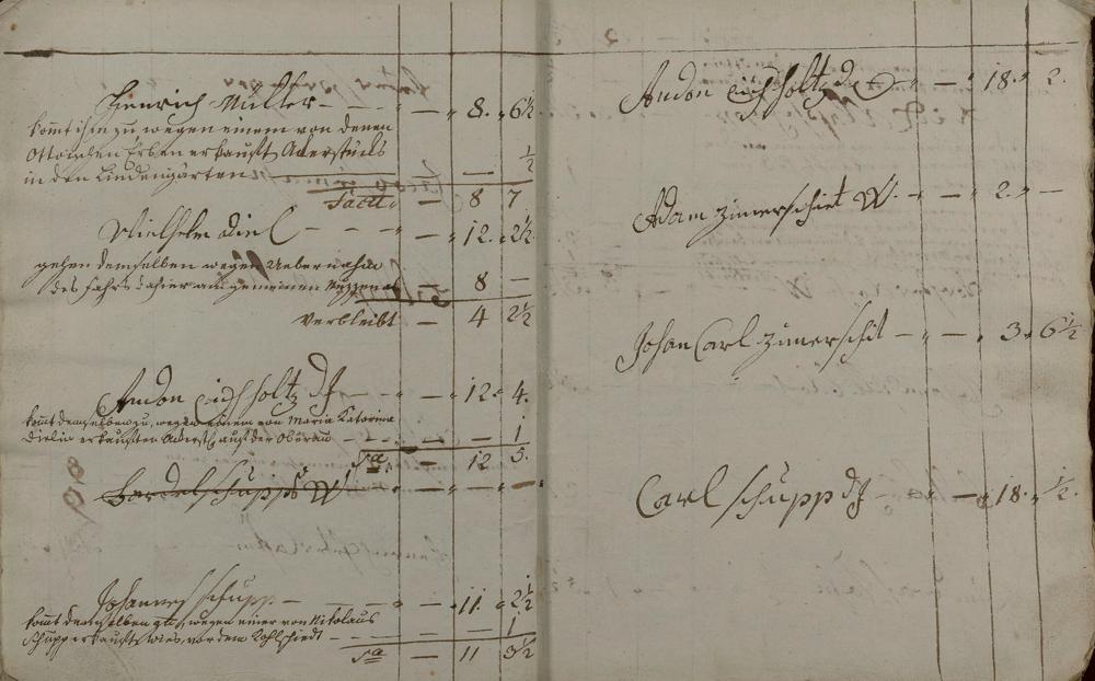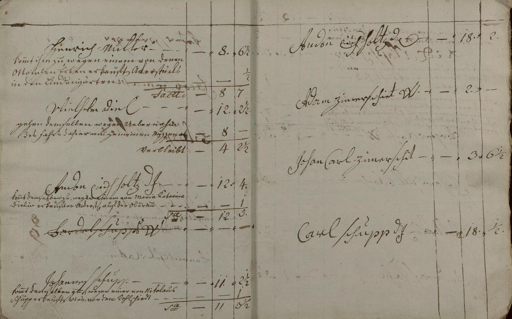 Kontributionsregister angefertigt von Bürgermeister Ferdinand Kaffine und Geselle Heinrich Peter Seck