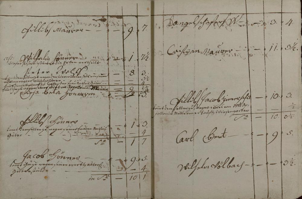 Kontributionsregister angefertigt von Bürgermeister Ferdinand Kaffine und Geselle Heinrich Peter Seck