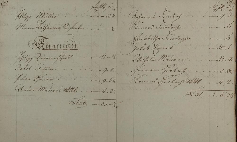Kontributionsregister angefertigt von Bürgermeister Heinrich Zimmerschied und Geselle Georg Philipp Roeder
