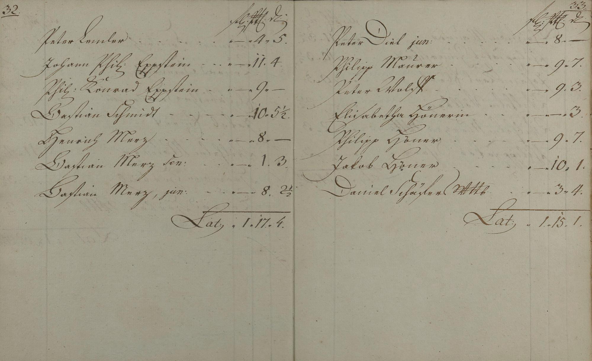 Kontributionsregister angefertigt von Bürgermeister Heinrich Zimmerschied und Geselle Georg Philipp Roeder