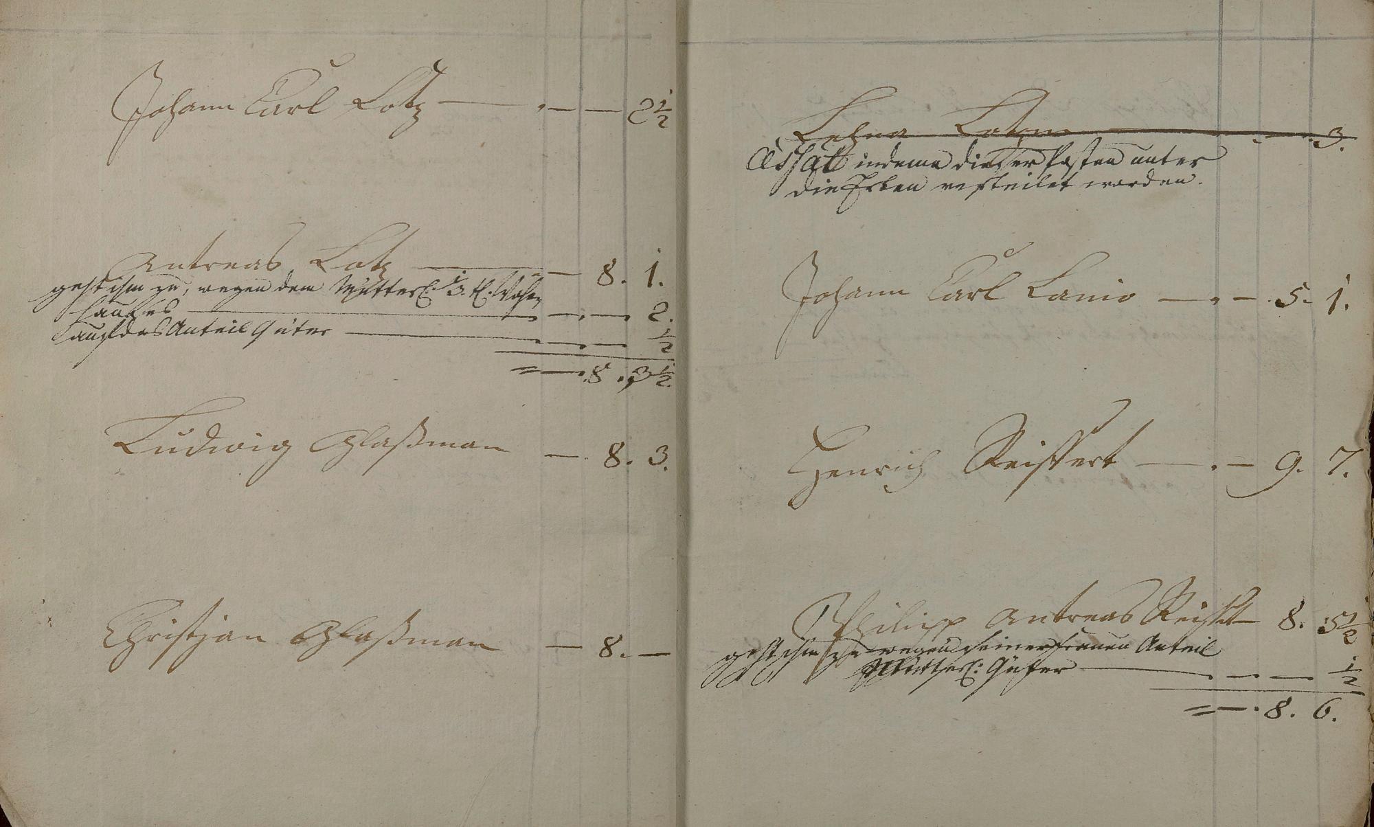 Kontributionsregister angefertigt von Bürgermeister Georg Wilhelm Keiser? und Geselle Anton Werner