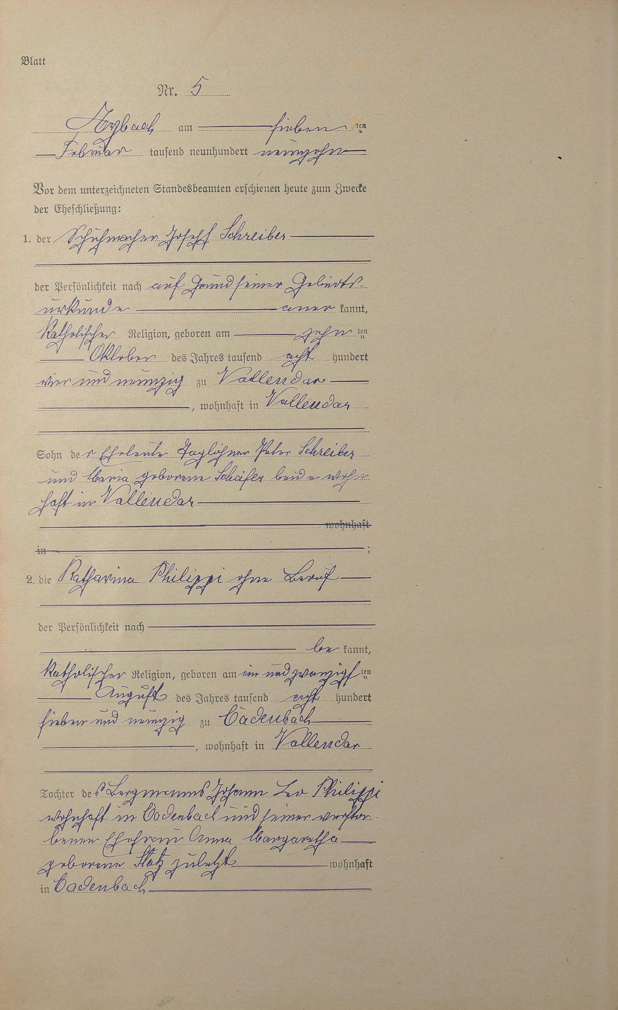 Heiratsregister 1919