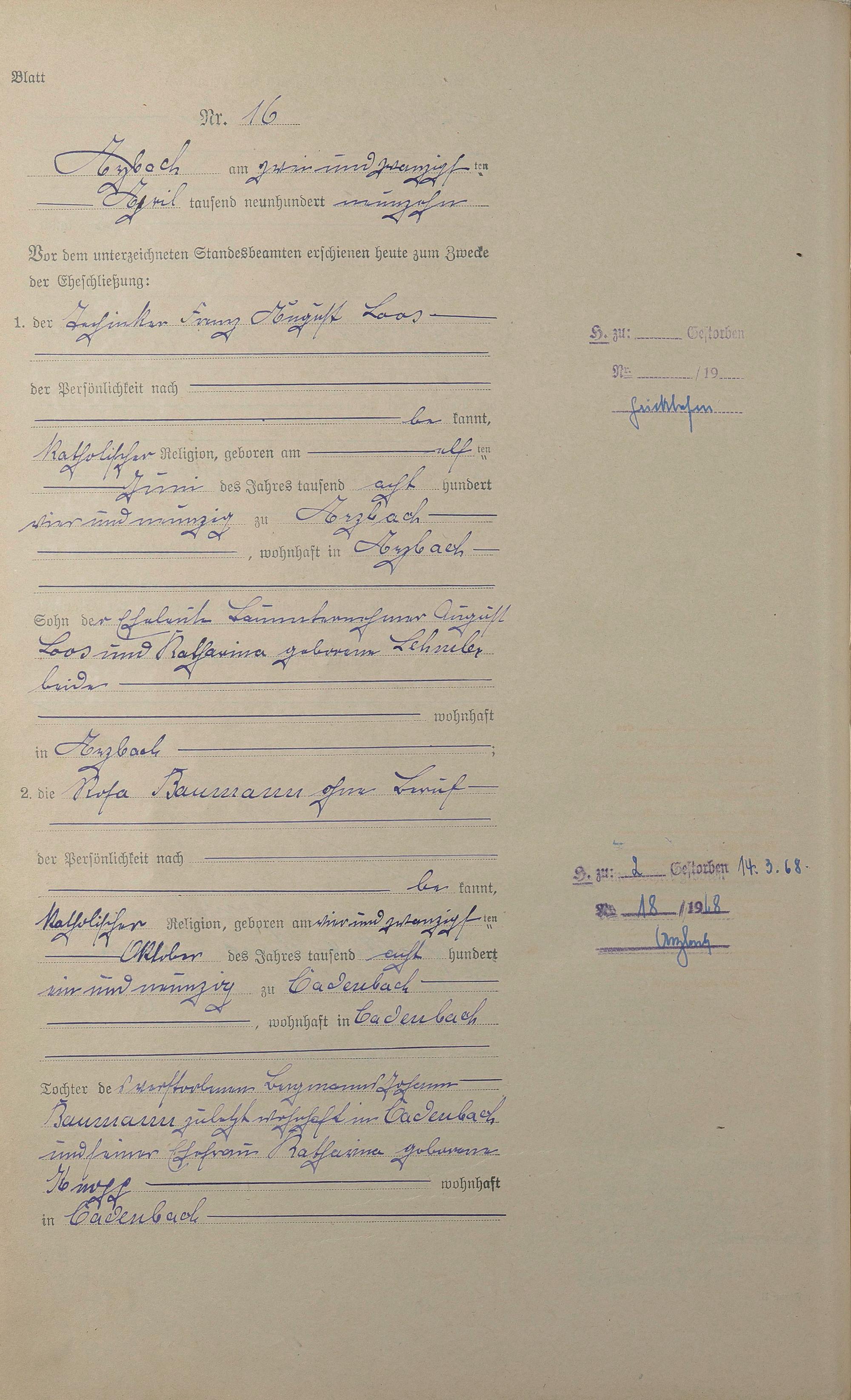 Heiratsregister 1919