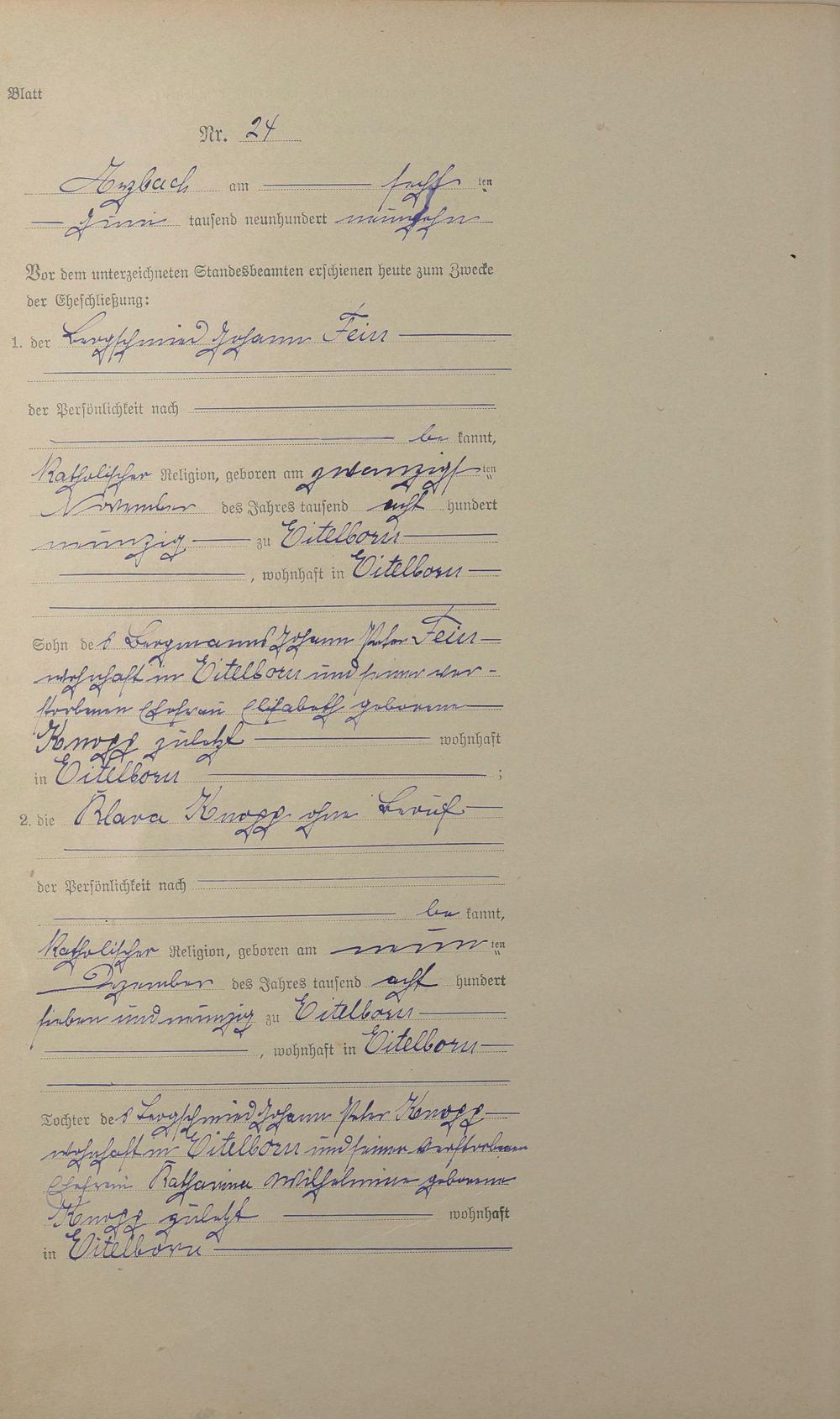 Heiratsregister 1919