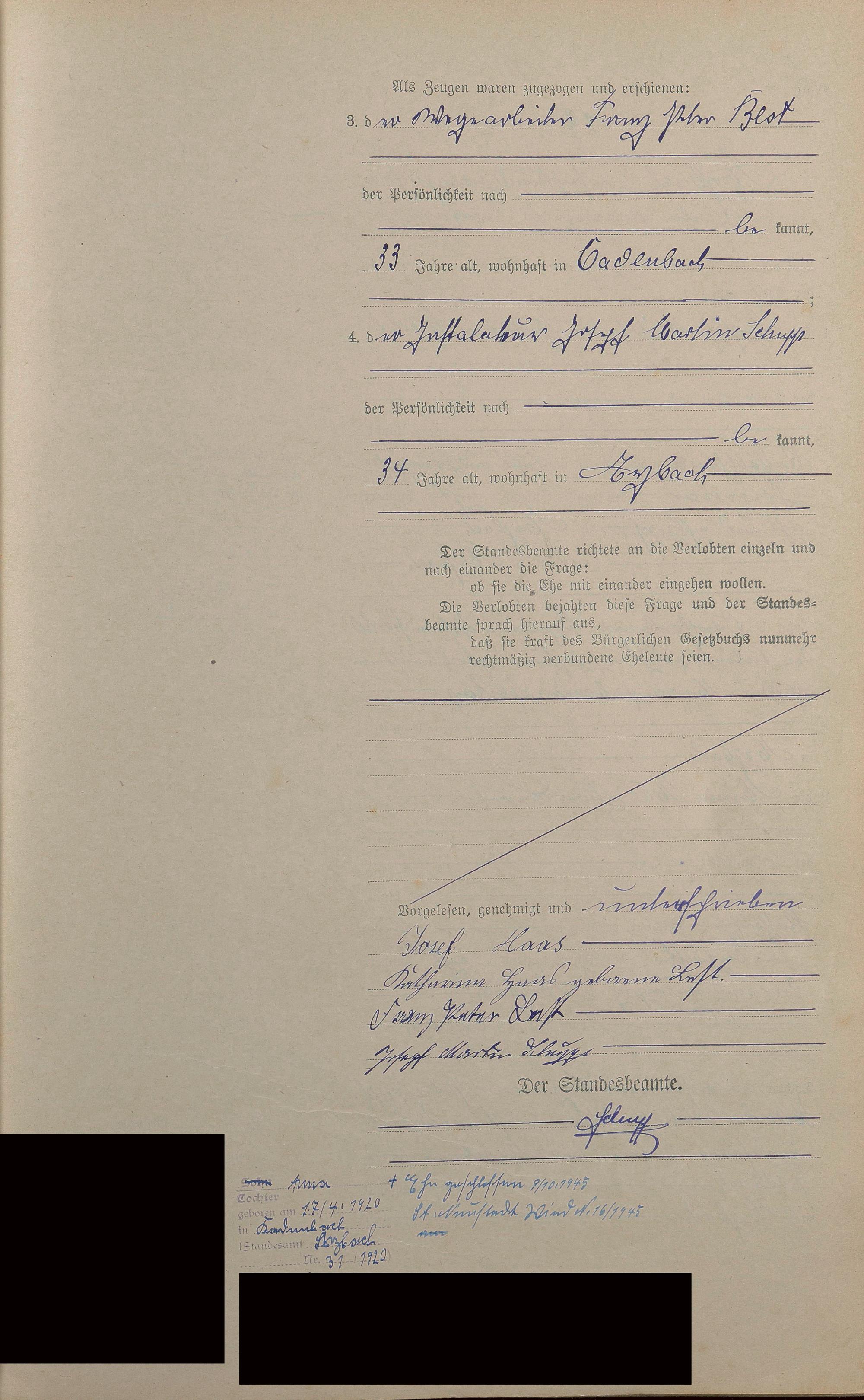 Heiratsregister 1919