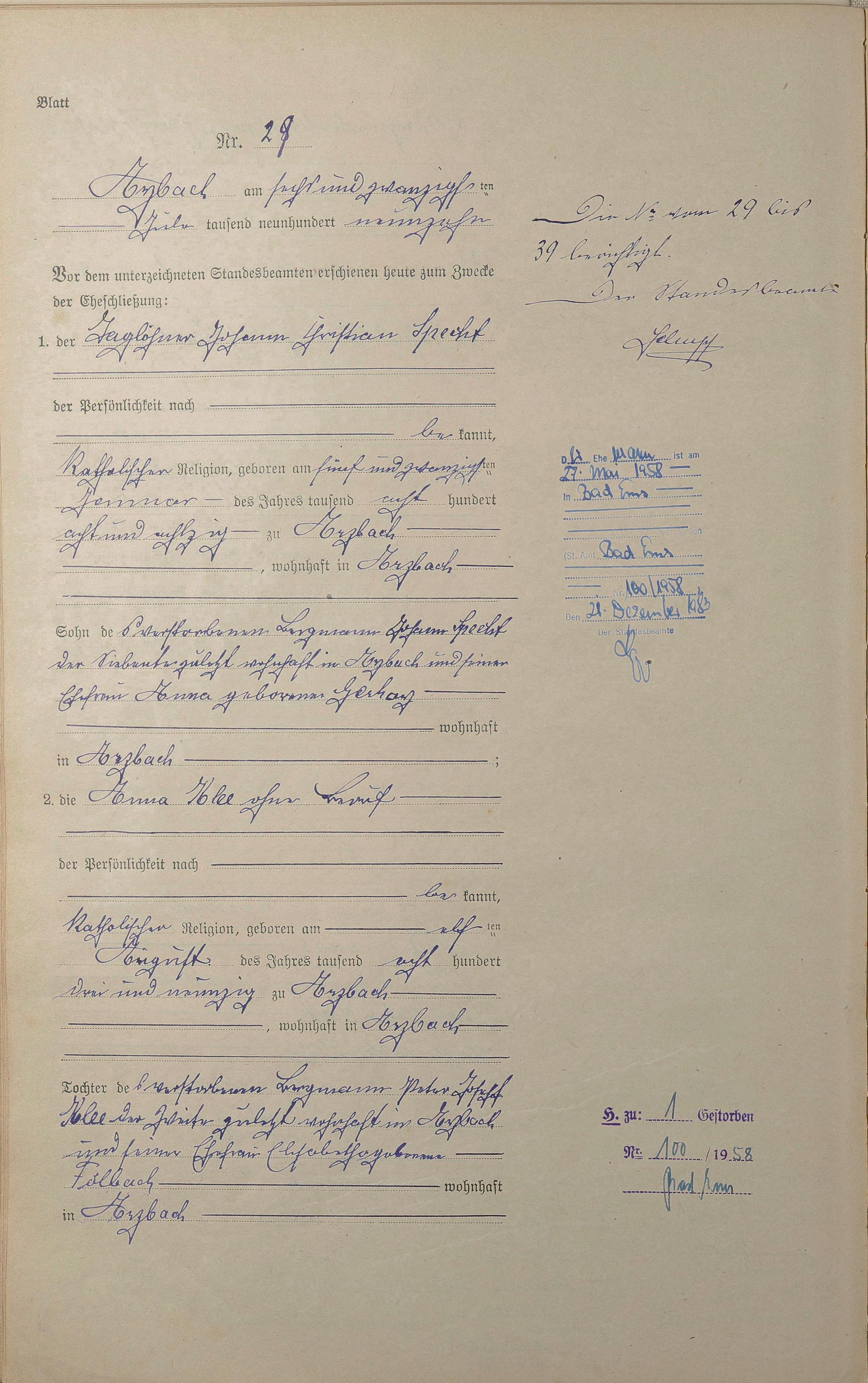 Heiratsregister 1919