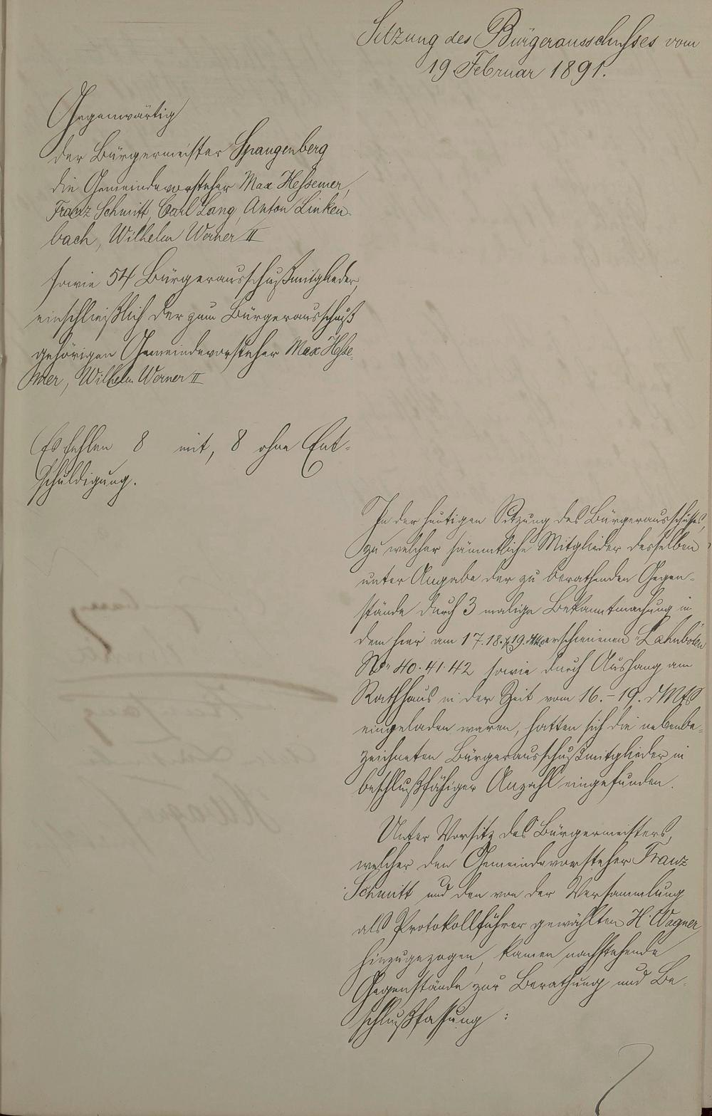 77: Bürgerausschussprotokolle 4. Sept. 1891 - 31. Aug. 1891