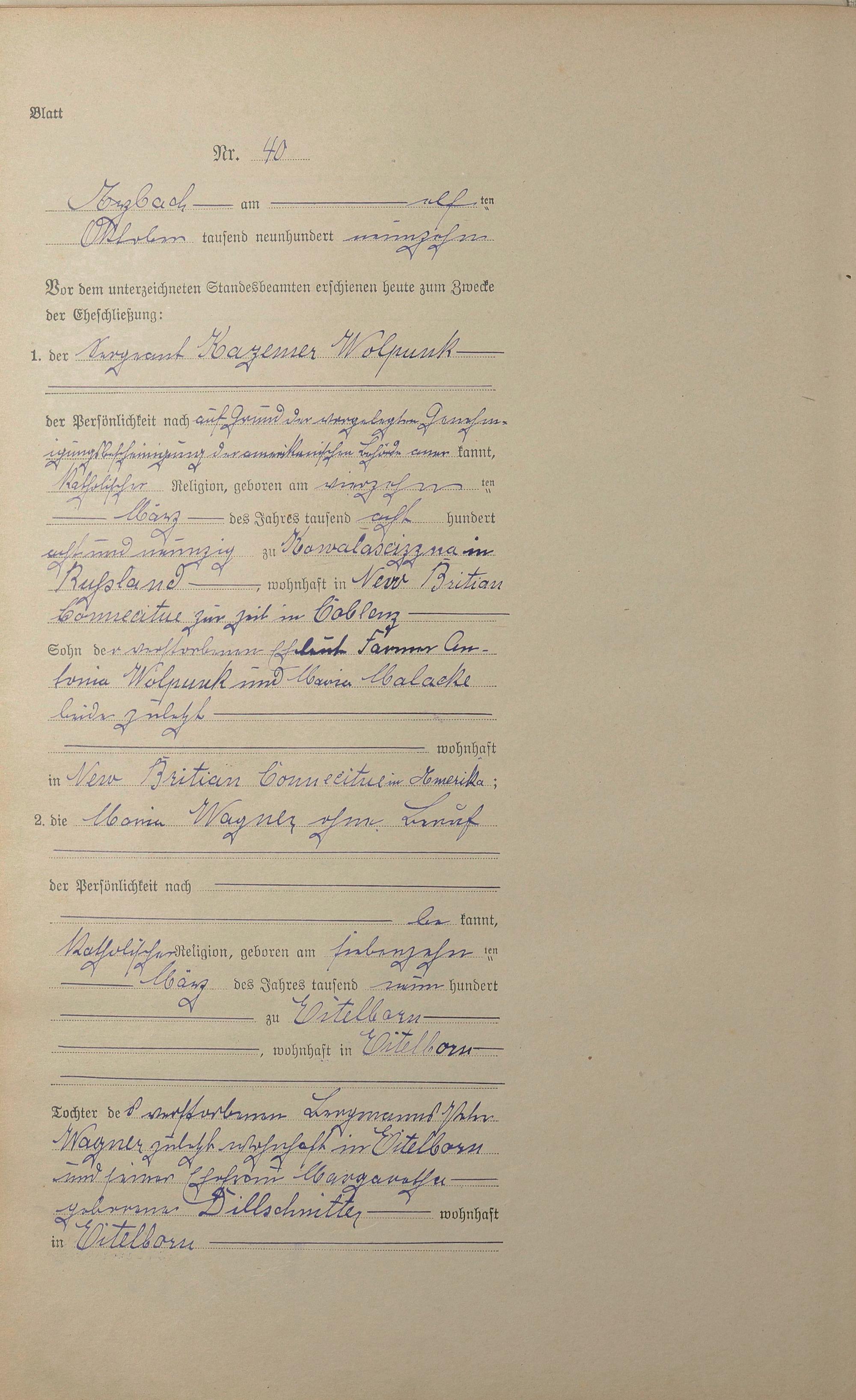Heiratsregister 1919