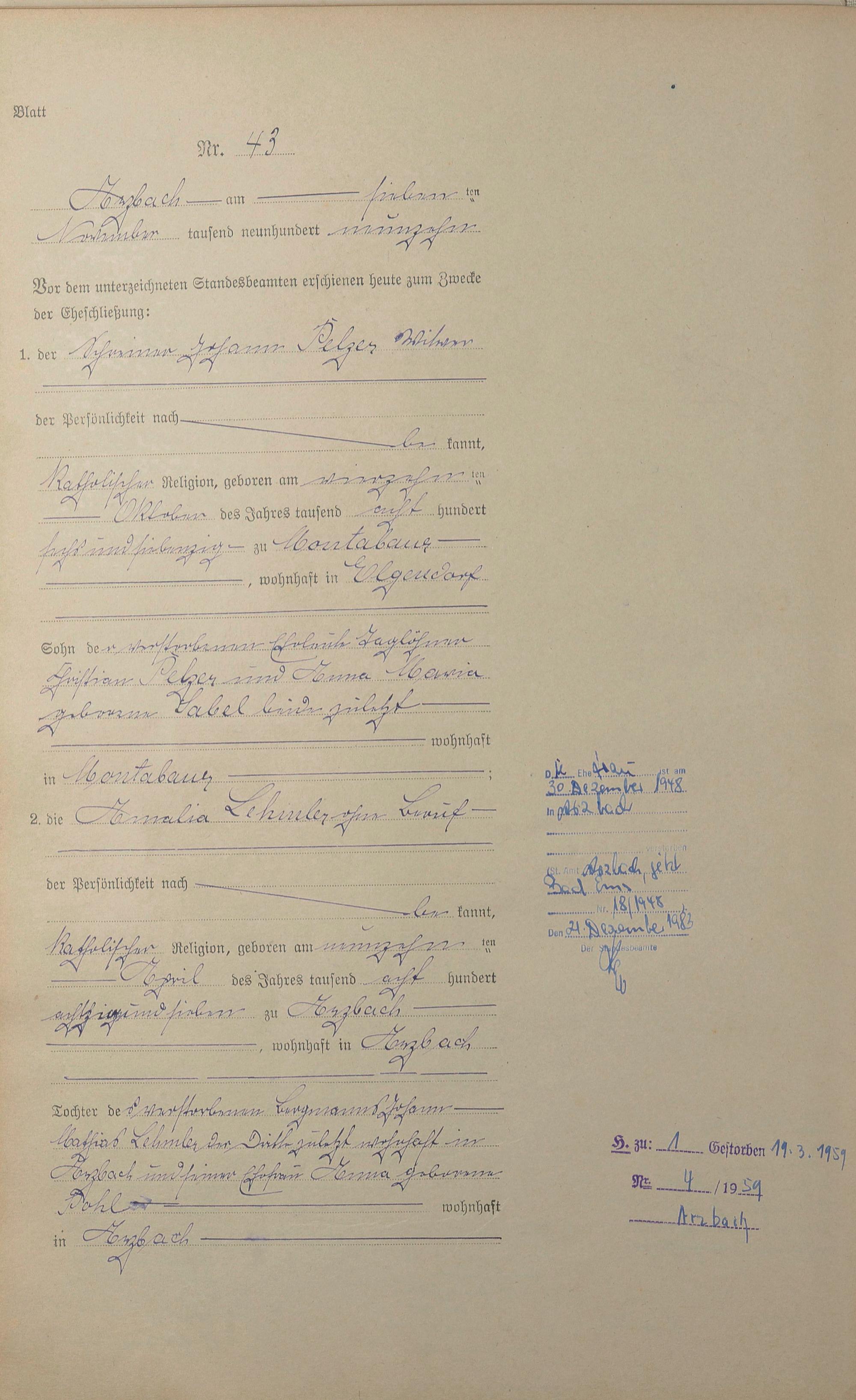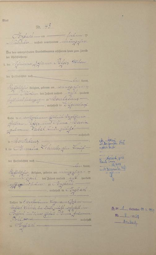 Heiratsregister 1919