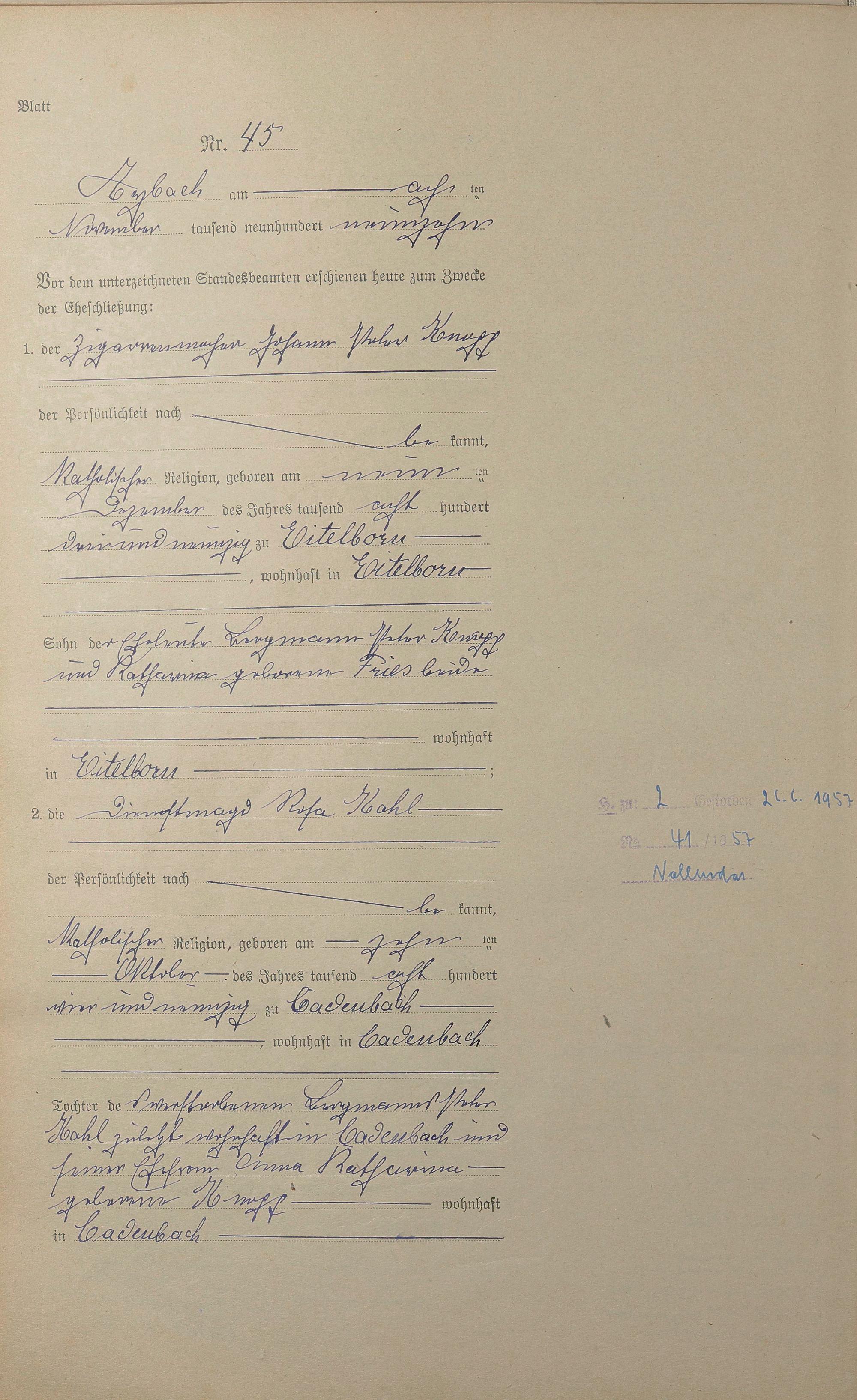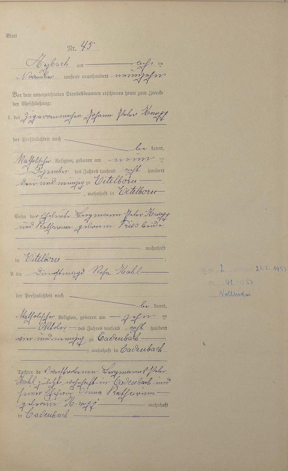 Heiratsregister 1919