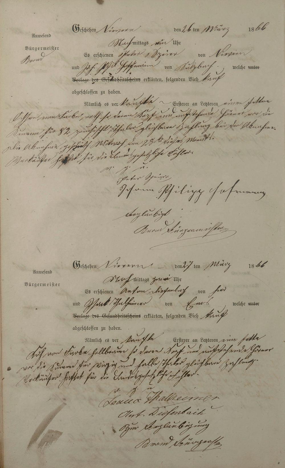 Protokollbuch über Viehhandel