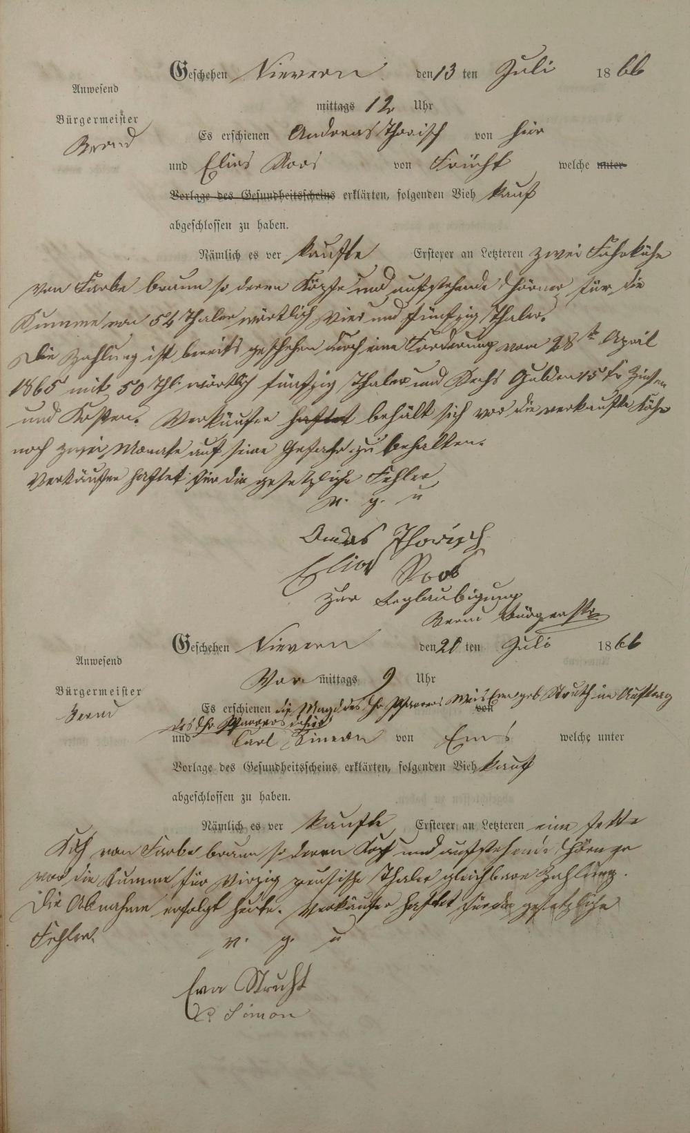 Protokollbuch über Viehhandel