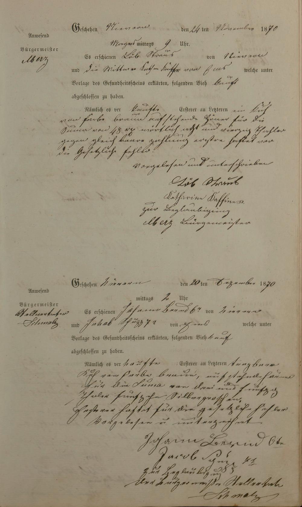 Protokollbuch über Viehhandel