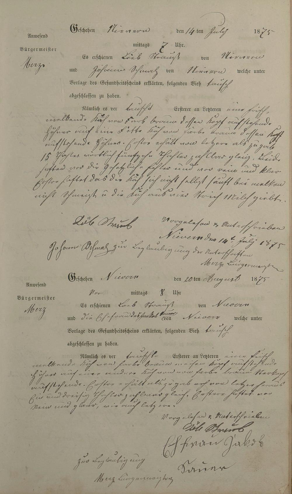 Protokollbuch über Viehhandel
